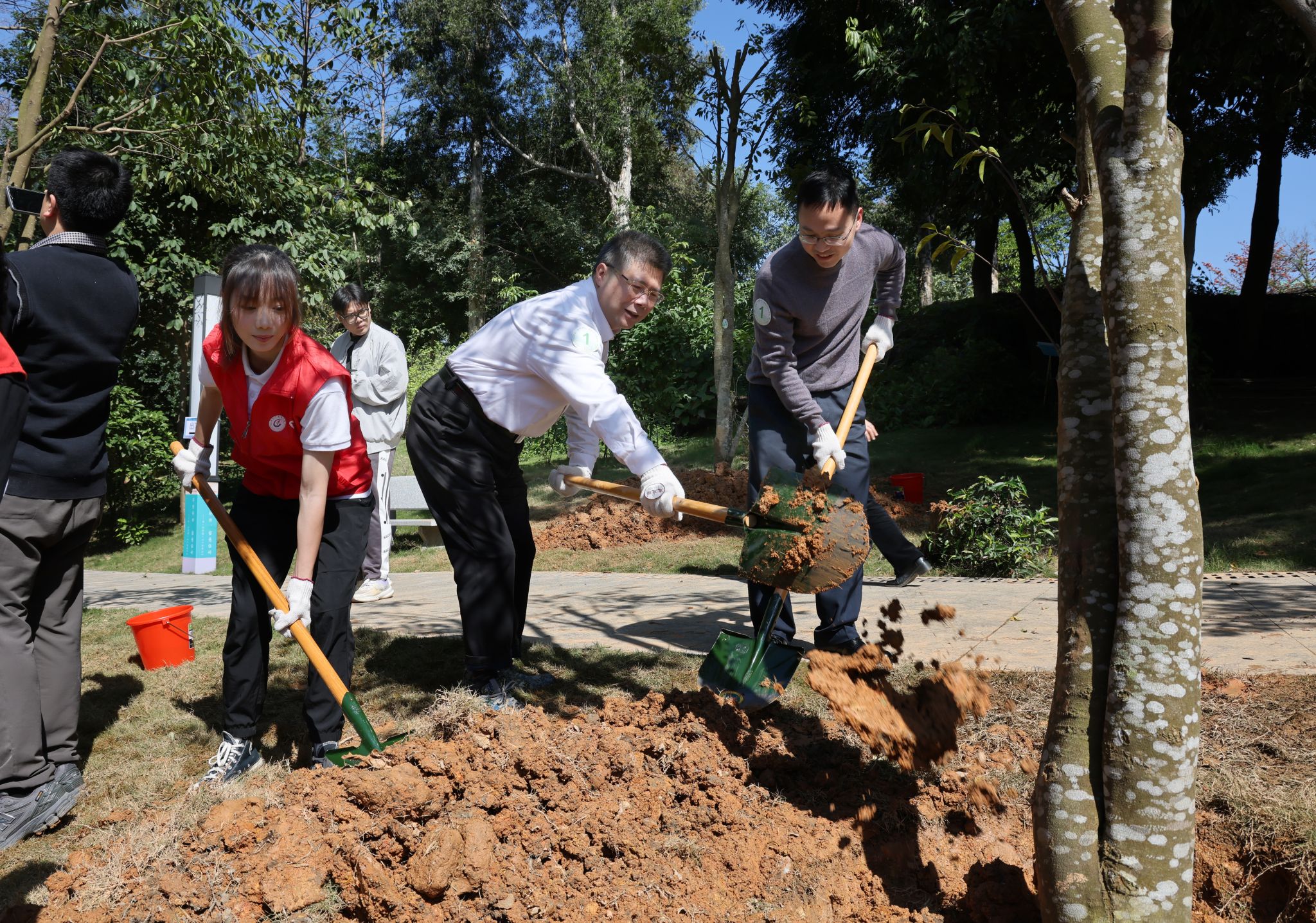 学校党委书记陈文锋,党委副书记、校长王伟,党委副书记邱亚洪,副校长潘华峰、林彬,纪委书记林奕娇,学校结对共建的佛冈县人民政府副县长叶荣盛,佛冈县教育局副局长冯汝明,beat365英国官网网站“双百行动”驻佛冈县服务队队长黄国富,相关职能部门和各学院负责人、教师代表,以及各学院学生、国际学生、中国香港、澳门、台湾学生、少数民族预科班学生等代表,在大学城校区药王山上共同种下20株沉香树。副校长郭鸿主持活动并致辞。