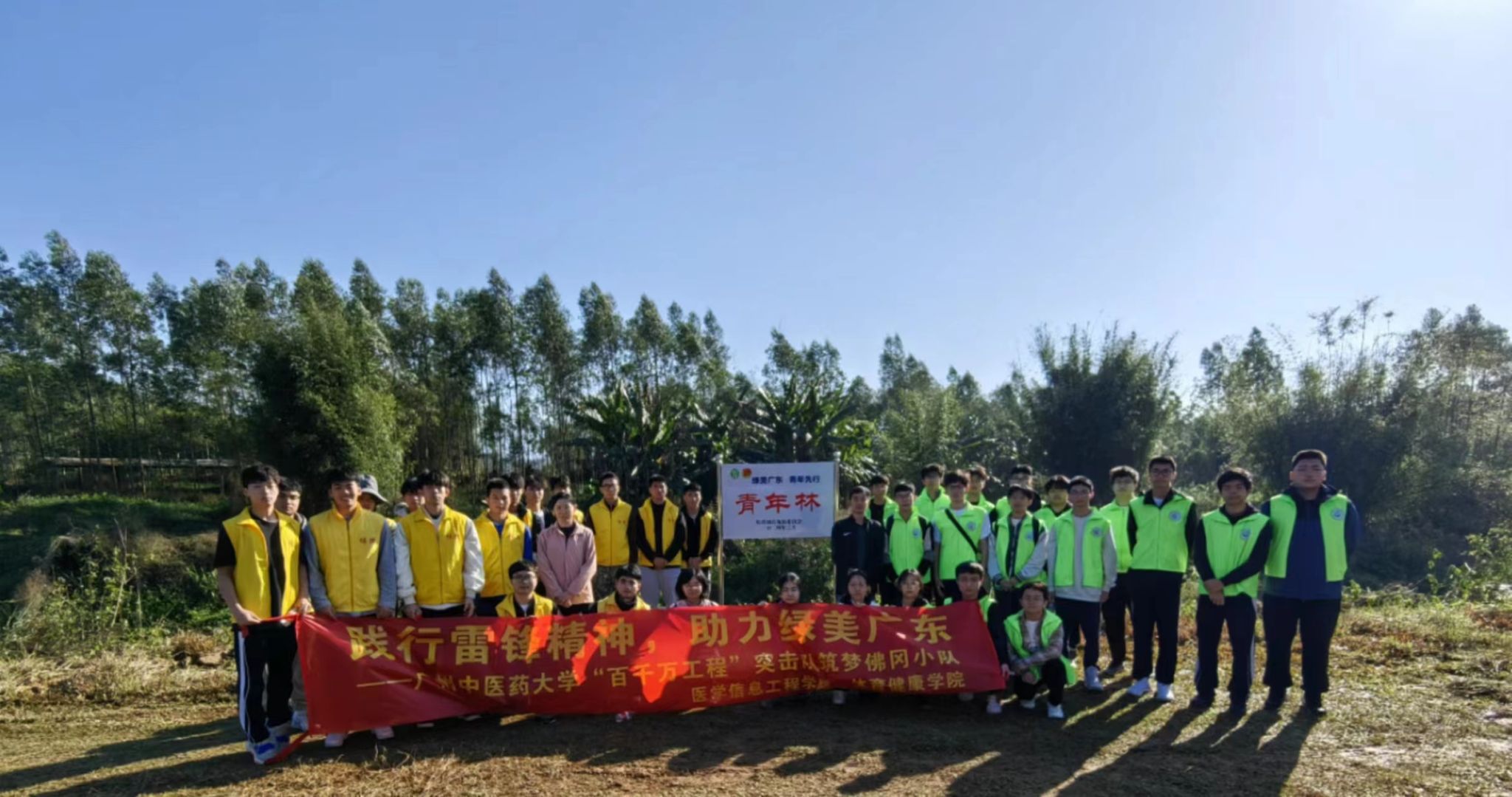 当天,来自学校医学信息工程学院、体育健康学院的36名师生志愿者奔赴佛冈县石角镇里水村开展植树活动,和当地团委干部一同共栽下49棵柳树树苗,与佛冈县“双向奔赴”,共同助力“绿美广东”。