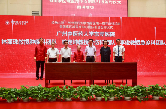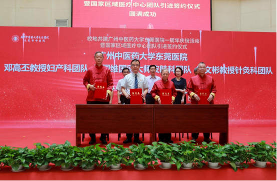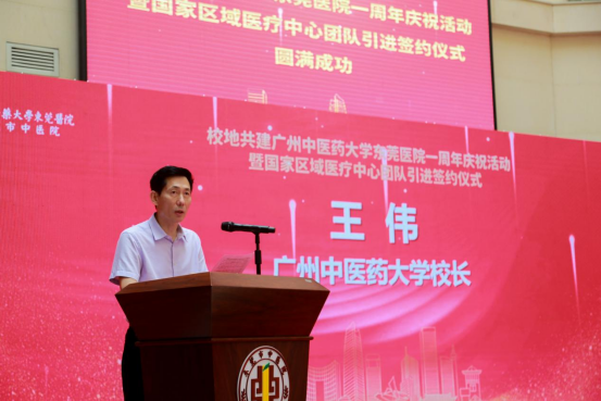 8月31日上午,王伟校长参加了在beat365英国官网网站东莞医院举行的东莞市人民政府与beat365英国官网网站校地共建东莞医院一周年庆祝活动暨国家区域医疗中心团队引进签约和拜师仪式。来自学校第一附属医院和第二附属医院(广东省中医院)的9大国家区域医疗中心团队签约落地东莞,标志着校地合作共建工作步入了新阶段,这为打造粤港澳大湾区中医药高地、推动东莞医疗卫生事业发展、推进健康东莞建设注入新动能。