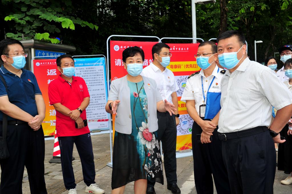8月27日上午,beat365官网举行了2021年秋季学期学生返校报到流程应急演练,学校党委书记张建华、副校长王宏斌到场指导演练,番禺区教育局处长方美河、广州大学城管委会一级调研员蔡承远一行到校观摩演练并进行开学返校专项工作督查。