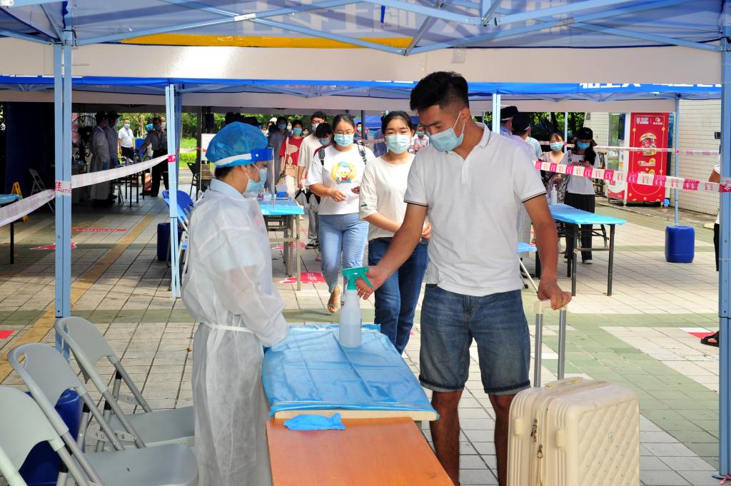 学生返校报到流程应急演练在beat365官网大学城校区生活区学生宿舍A栋出入口进行,演练主要模拟了两个场景:一是学生返校当天报到身份核验(身份证、学生证、健康码、行程卡)、测温、返校学生随身行李消杀的运行流程,二是在门岗查验过程中发现体温过高学生的应急处置流程,较好检验了beat365官网校园疫情防控反应力和处置水平。