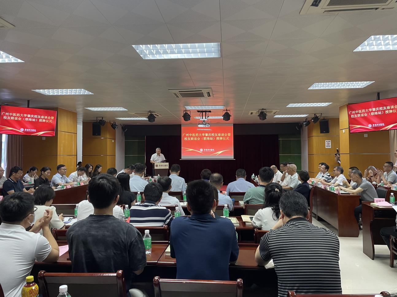 肇庆市中医院领导班子,学校党委办、党委组织部、党委宣传部、校庆办、校友办、发展规划部(医院管理部)、教务部、科学技术部、研究生院,第一附属医院(第一临床医学院),中药学院,针灸康复临床医学院等部门负责同志及肇庆市校友代表共100余人参加了活动。