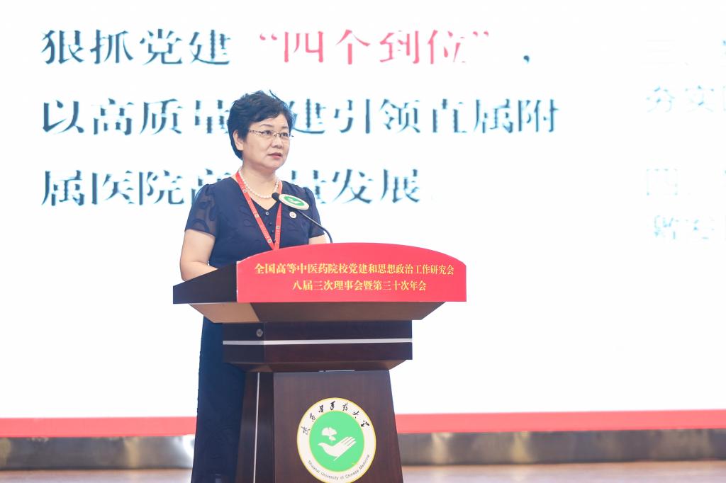 7月16日,全国高等中医药院校党建和思想政治工作研究会八届三次理事会暨第三十次年会在陕西中医药大学召开,国家卫生健康委党组成员、国家中医药管理局党组书记、副局长余艳红出席会议,并作题为《深入学习贯彻习近平总书记“七一”重要讲话精神,谱写新时代高等中医药院校发展新篇章》的主旨辅导报告。