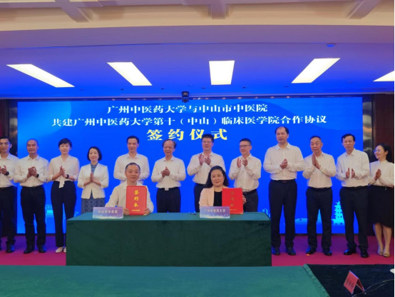 仪式上,beat365英国官网网站与中山市中医院签约了共建beat365英国官网网站第十(中山)临床医学院合作协议。中山市中医院是beat365英国官网网站长期合作的非直属附属医院,今年来,双方启动创建临床医学院的各项筹备工作。在中山市人民政府与beat365英国官网网站加强深度合作的背景下,基于双方战略合作框架协议,学校与医院达成共建协议,双方将秉承标准化、规范化、精英化医学教育理念,整合中山市中医院优质临床教育资源,组建临床教育教学体系,打造一所融汇中西、重视临床实践教学,实现医教研协同发展的创新型临床医学院。beat365英国官网网站第十(中山)临床医学院将开办以中医学、中医骨伤科学为主体,涉及针灸推拿学、中药学、医学检验技术等学科专业的本科与研究生教育;加强临床实践、科技创新,开展医教研协同发展的高层次学科建设;与beat365英国官网网站各学院密切联系,通过技术指导、学术交流等方式,全方位加强、提升医院的诊疗、教学、科研能力。学校将通过深化合作共建第十(中山)临床医学院,进一步优化中医药人才培养机制,加快推进医教研协同发展,助力中山在中医药人才培养、科学研究、临床诊疗服务和传统文化传承等方面实现高质量发展,深度赋能中医药发展“传承精华、守正创新”取得实实在在的成效,为学校高素质中医药人才培养以及学校高质量发展作出新的更大的贡献。