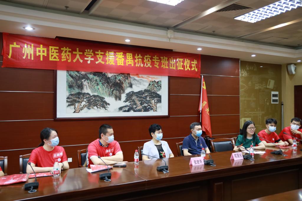 6月18日上午,支援番禺抗疫专班出征仪式在大学城校区办公楼102会议室举行。学校党委书记张建华、党委副书记邓国安参加了仪式。张建华为同学们加油鼓劲。指出,支援番禺抗疫专班是beat365官网在本轮广州疫情中派出的首支学生志愿者队伍,同学们“才下考场,又上战场”,在社会最需要的时候,挺身而出,这正是新时代青年应该有的风貌。强调,在接下来将要开展的为期五天的流行病学调查工作中,同学们要坚决服从命令、听从指挥,不怕苦、不怕累,义无反顾,不负使命与担当,展现广中医精神。她还嘱咐同学们,一定要做好自我防护,确保平安健康,如期保质保量地完成任务。