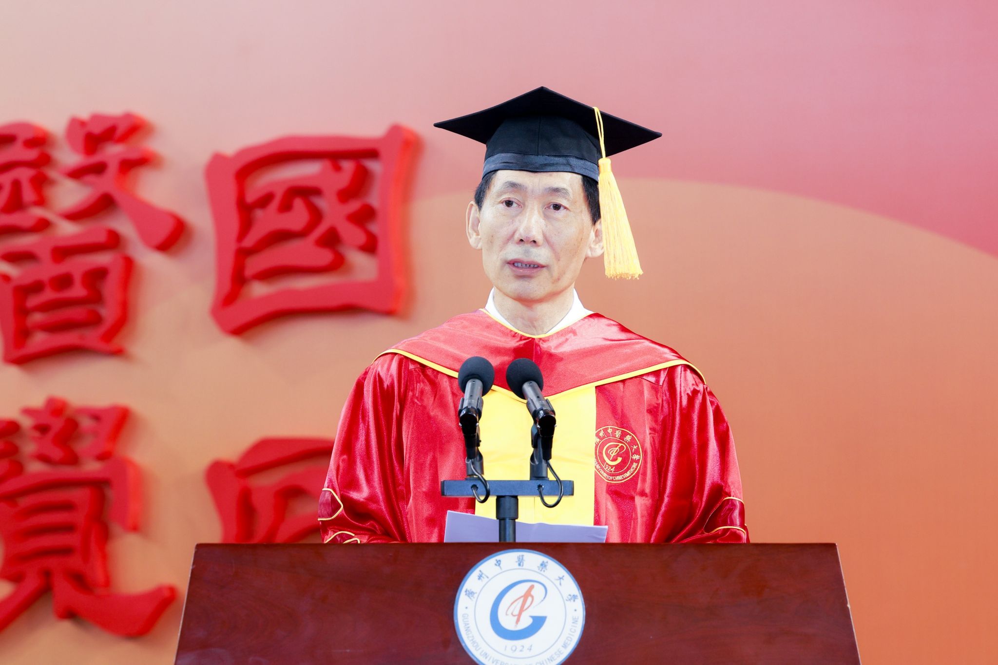 在你们踏上人生新征程、开启人生新篇章之际,请坚守初心和信念,用“八纲辨证”把握时代脉搏,追随时代浪潮“起承转合”,做有魂、有根、有行、有容的新时代“四有”青年。