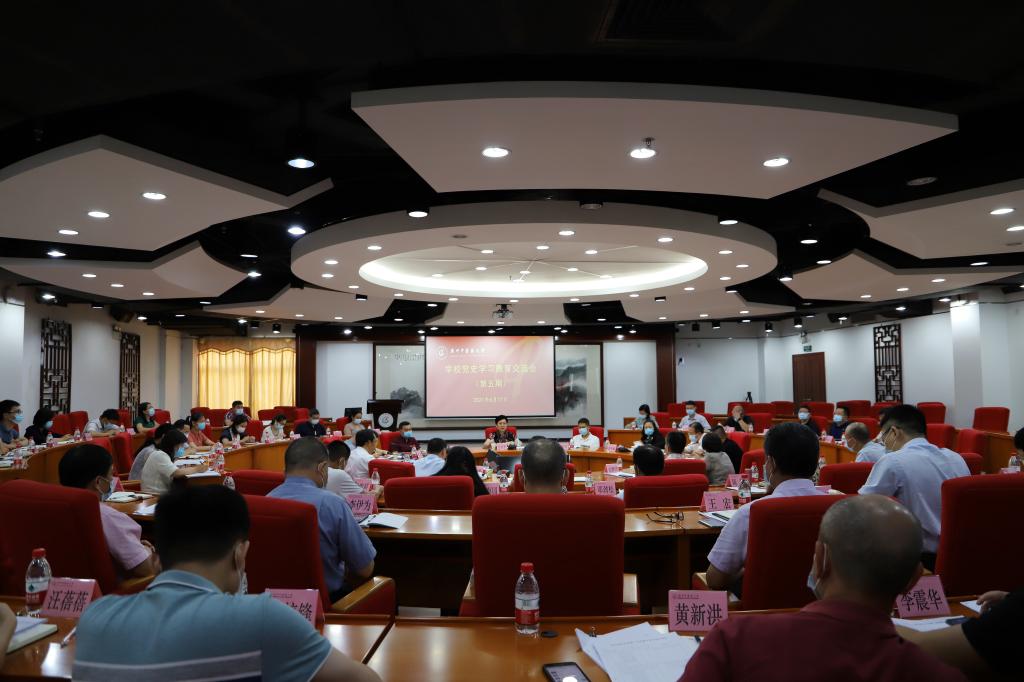 6月17日上午,学校党史学习教育第五期交流会在大学城校区办公楼101会议室召开。学校党委书记张建华主持会议并讲话。副校长刘中秋、王宏斌作重点发言。