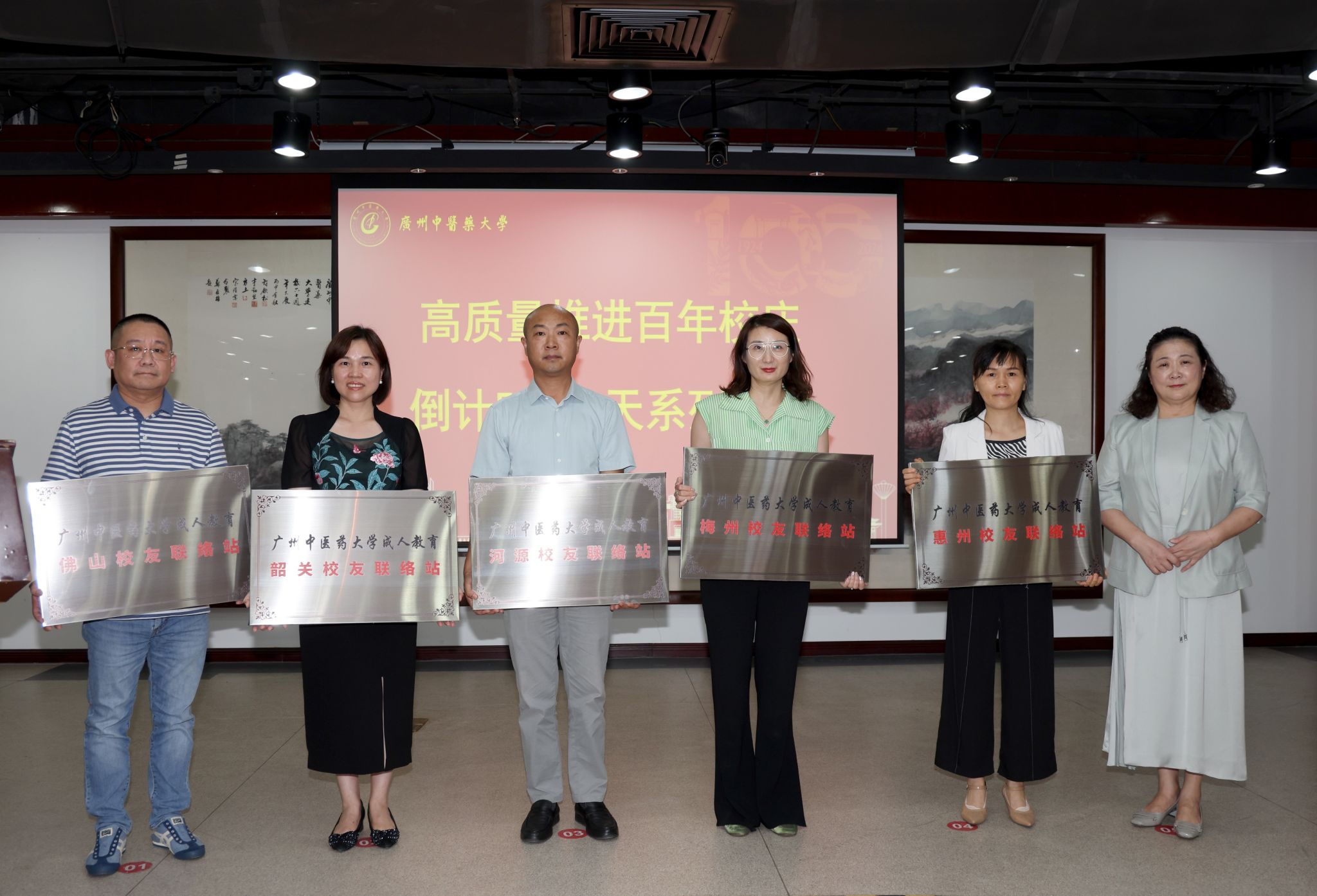 潘华峰为省内各成人教育校友联络站授牌;驻非青蒿抗疟援外团队与学校连线,为百年华诞献上祝福;蔡树群先生捐赠卢瑞华省长校庆书法作品;黄嫚丽教授发布新书《复杂环境下的组织战略:承诺、决策与行动——广东省中医院的实践(1933-2023)》。学校19个校外继续教育教学点代表,校友代表,校职工子弟代表及社会各界爱心人士纷纷向学校捐赠,为学校高质量发展添砖加瓦。