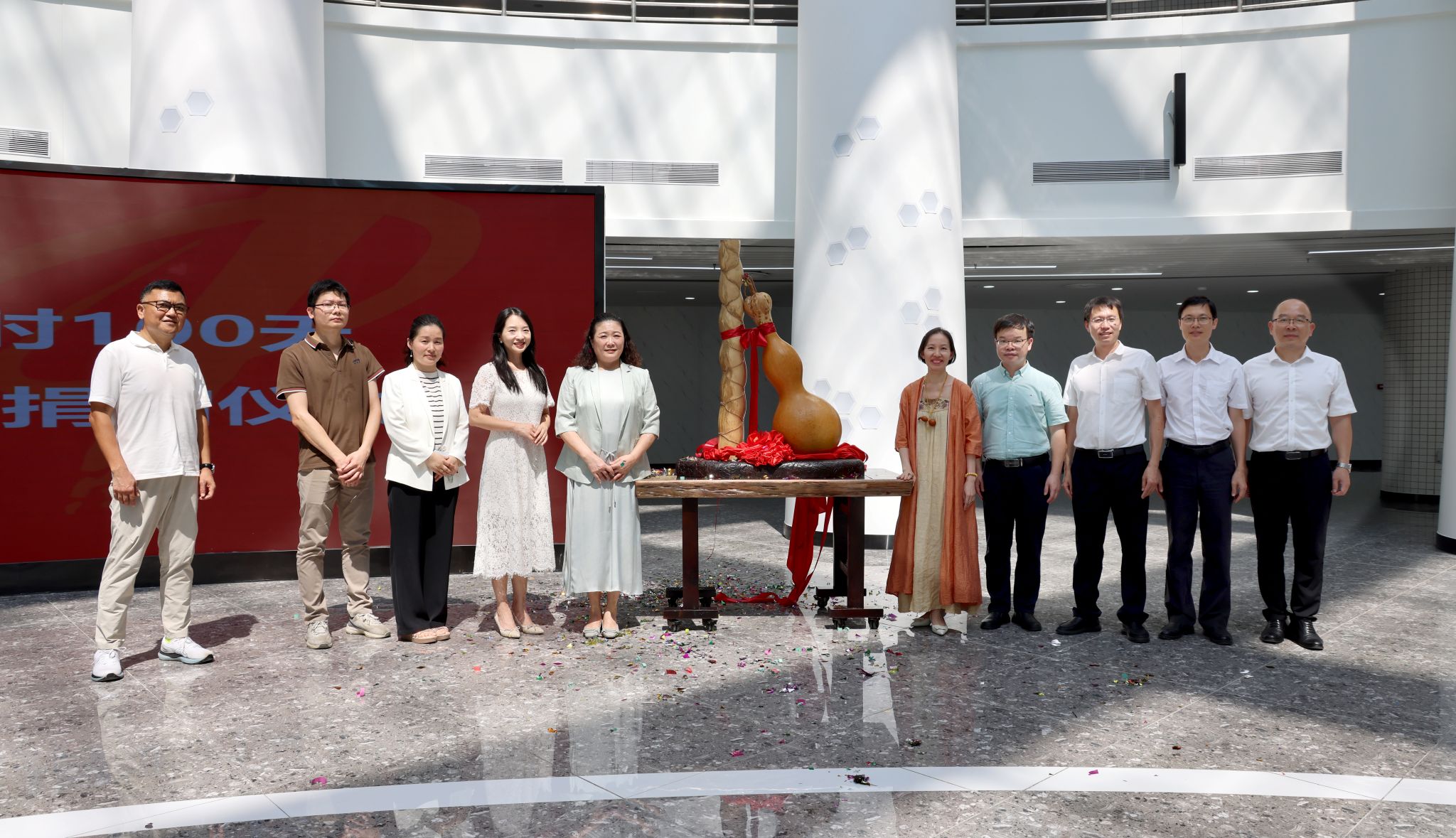 8月8日,学校高质量推进百年校庆倒计时100天系列活动在大学城校区举行。学校党委书记陈文锋出席活动并讲话。广东省中医药学会会长吕玉波,学校党委常委、副校长、第二附属医院(广东省中医院)院长张忠德,原广东省文联副主席徐南铁,华南理工大学工商管理学院副院长黄嫚丽出席活动。活动由学校党委常委、副校长潘华峰主持。