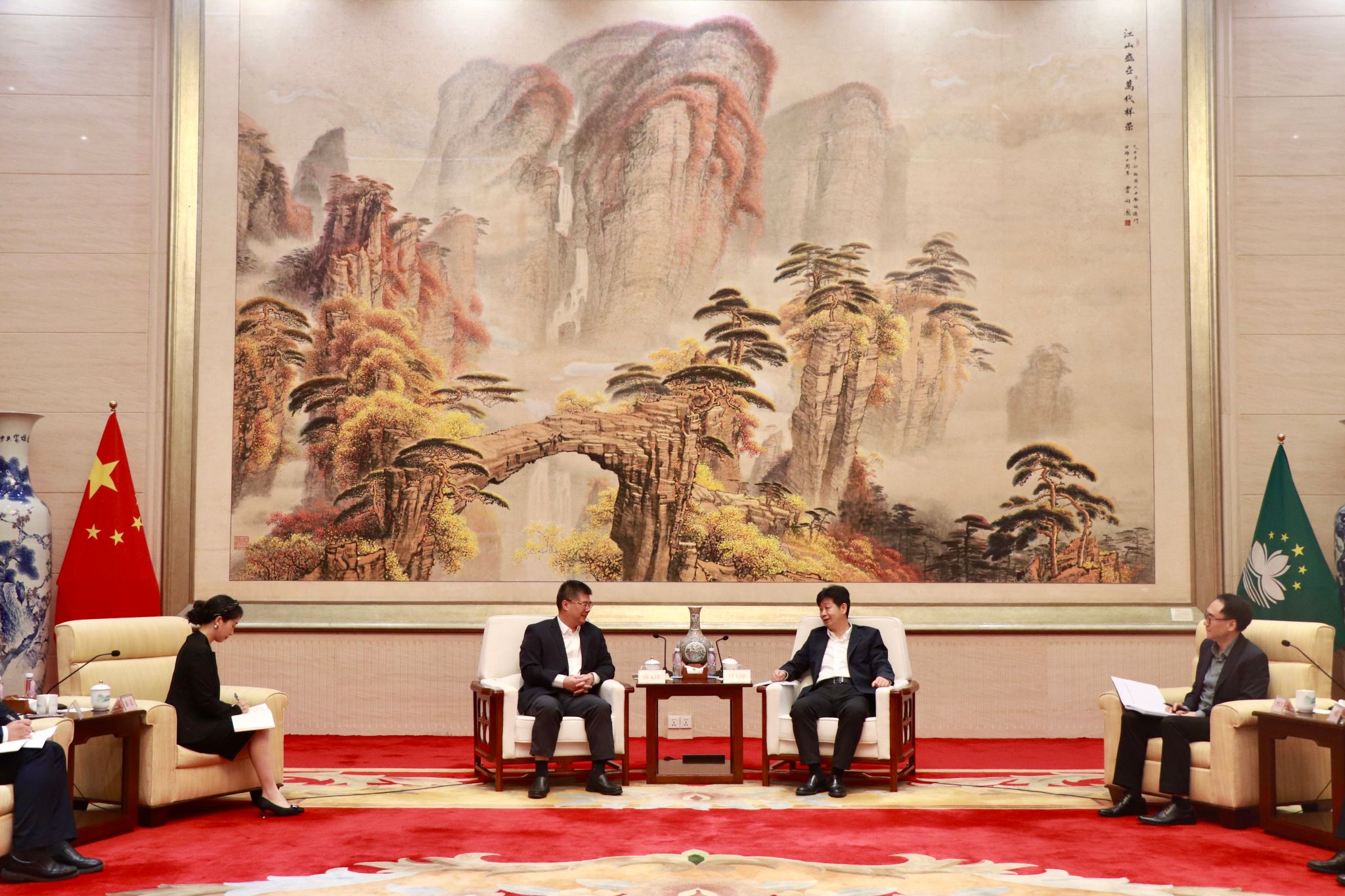 8月16日,beat365英国官网网站党委书记陈文锋带队前往澳门,拜会中央人民政府驻澳门特别行政区联络办公室副主任吕玉印。教青部部长李雪飞、教青部副部长李勇先、宣文部综合处处长王惠杰、教青部高校处处长岑嘉仪参加会见。