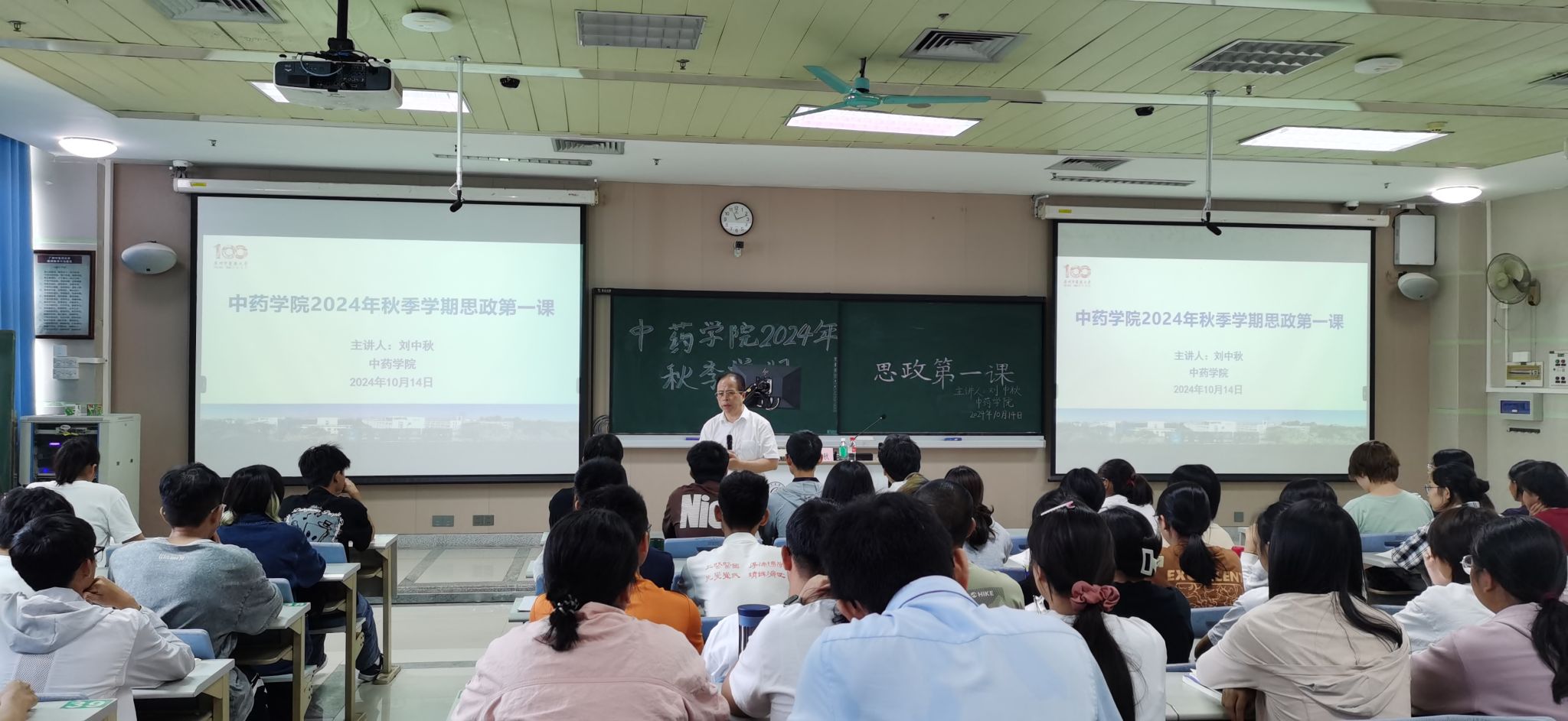 10月14日,副校长刘中秋为中药学院2024级中药学专业学子讲授题为“传承家国情怀,争做本领精深的中医药事业接班人”的思政第一课。