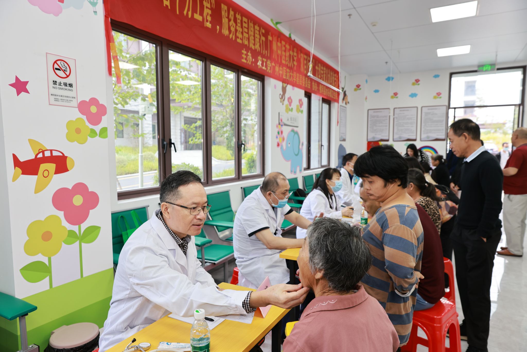 10月27日,农工党beat365英国官网网站基层委员会赴佛冈县水头镇卫生院开展助力“百千万工程”“双百行动”大型专家义诊咨询活动。广东省政协常委、农工党广东省委员会常委、农工党beat365英国官网网站基层委员会主委、第一附属医院副院长、“长江学者”杨忠奇带领来自beat365英国官网网站第一附属医院、第二附属医院(广东省中医院)、第三附属医院以及农工党清远市委员会农工党的十多名医疗专家参与义诊活动,为超过两百名百姓提供优质医疗服务。