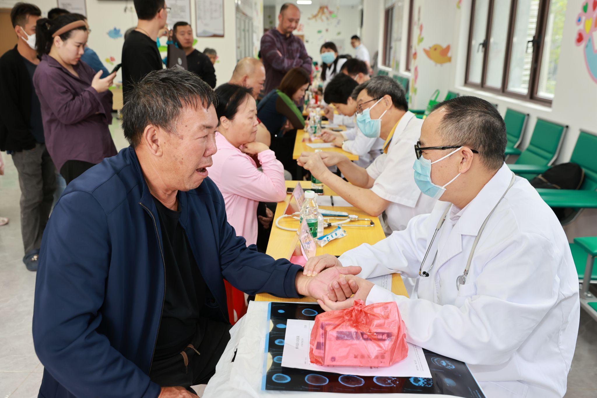 义诊专家团队为来自心血管内科、老年科、呼吸内科、普通外科、胃肠甲状腺外科、骨伤科、眼科、全科医学科、神经外科、妇产科、治未病科等多个科室的副高级职称以上医生。水头镇及周边乡镇很多群众听说省级专家来义诊,早早就赶过来排队候诊,义诊场面热烈火爆。专家们耐心为群众望闻问切,了解病情、辨证开方,需要进一步治疗的,专家们还主动留下联系方式,以便后续进行治疗指导。义诊现场还提供免费测量血糖、血压、指脉氧监测等服务。