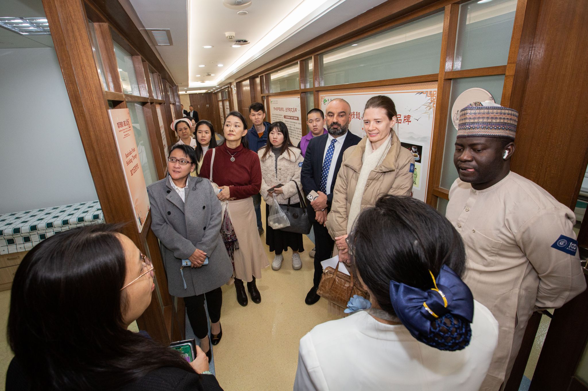 活动中,来宾们一同聆听中医药文化养生讲座,并获赠张忠德教授主编的《时节养生—中国人的健康智慧》一书,深入了解中医药“顺应天时,天人合一”的养生之道,感悟中医药文化的厚重底蕴和博大智慧。来宾们还实地参观了医院的智慧药房、传统疗法科、康复大厅等部门,体会现代技术赋能下传统医学的数字化融合发展。