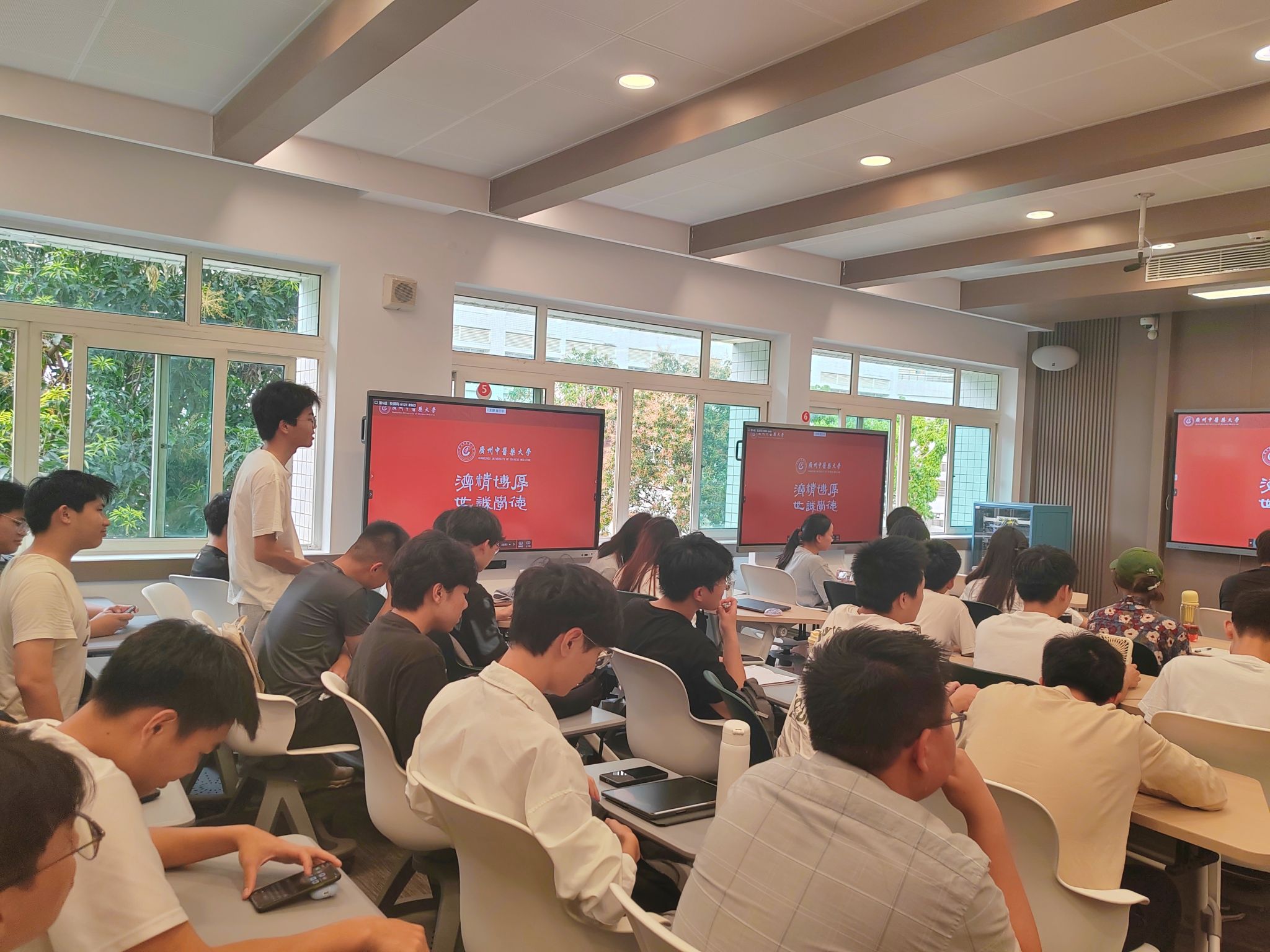 3月27日下午,学校党委常委、副校长杨荣源以“科技创新赋能中医药高质量发展”为主题,在教学楼A210课室为医学信息工程2024级2班全体同学讲授春季学期“思政第一课”。