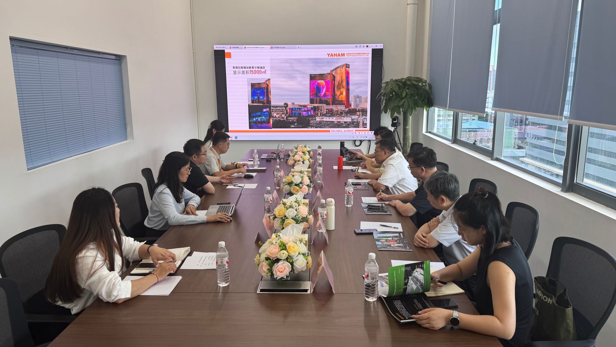 杨荣源一行先后参观了研发实验室、智能化生产车间以及员工宿舍,实地考察了元亨光电在LED显示设备、超高清可视化解决方案等领域的最新研发成果与先进制造工艺。此次调研旨在了解光电技术前沿发展,共同发掘显示技术在医疗教学、信息可视化、健康服务等场景下的潜在应用结合点,为后续校企合作寻找切实可行的突破口。