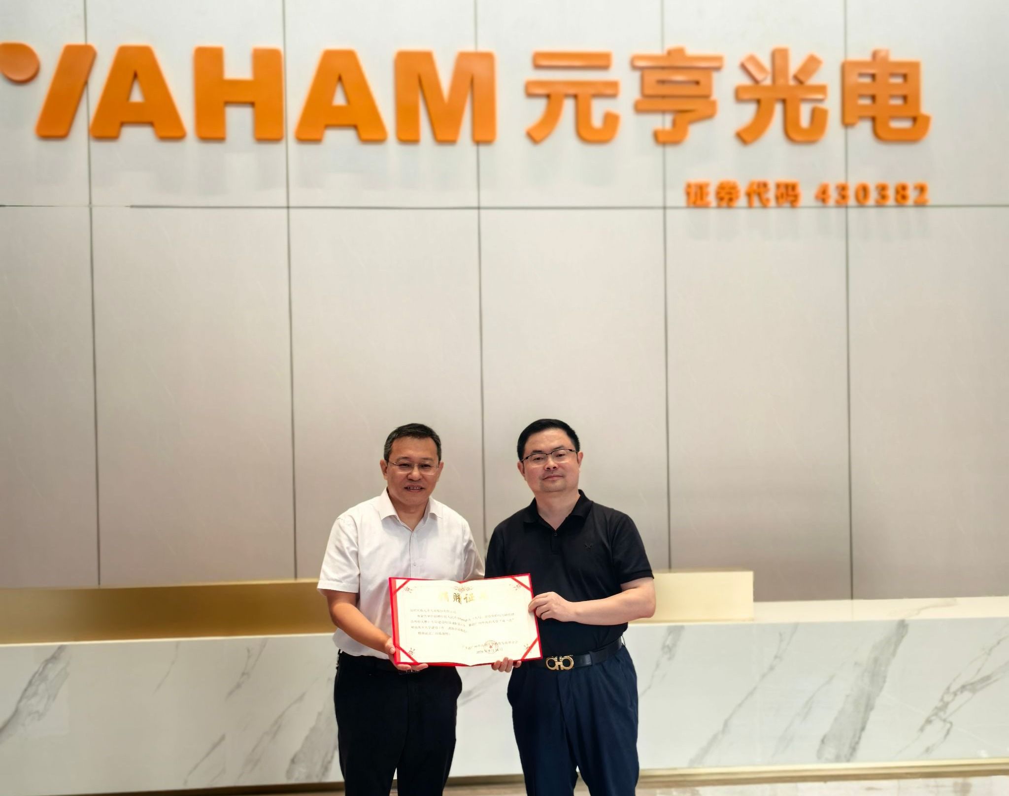 杨荣源向元亨光电朱海涛董事长颁发感谢状