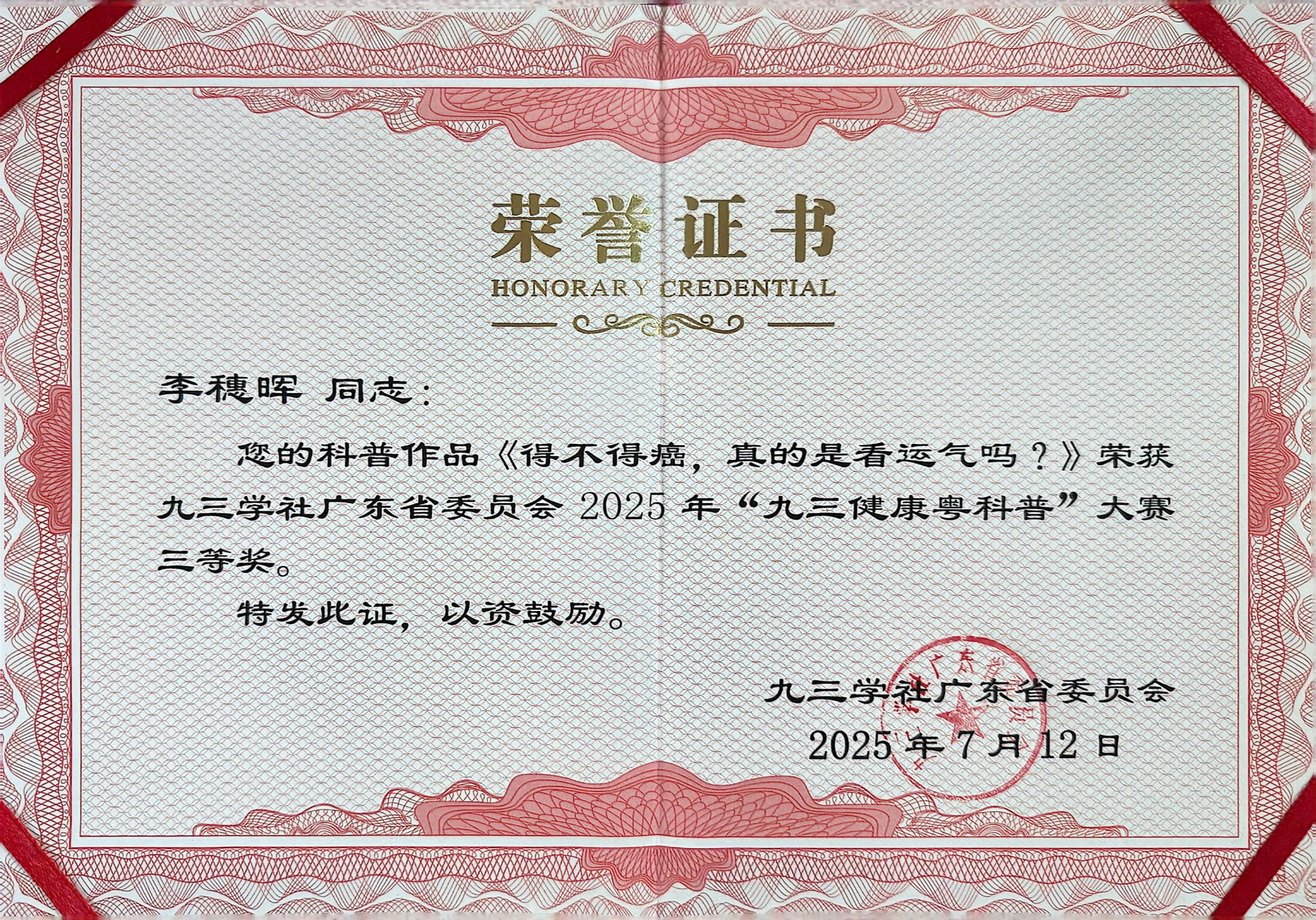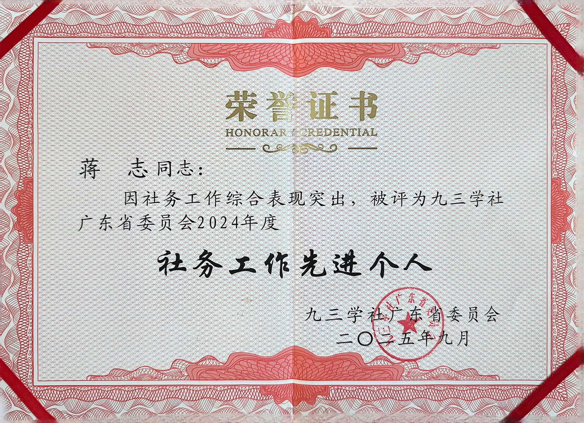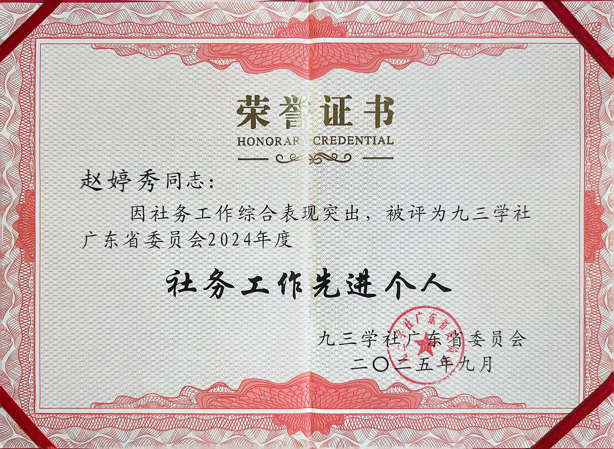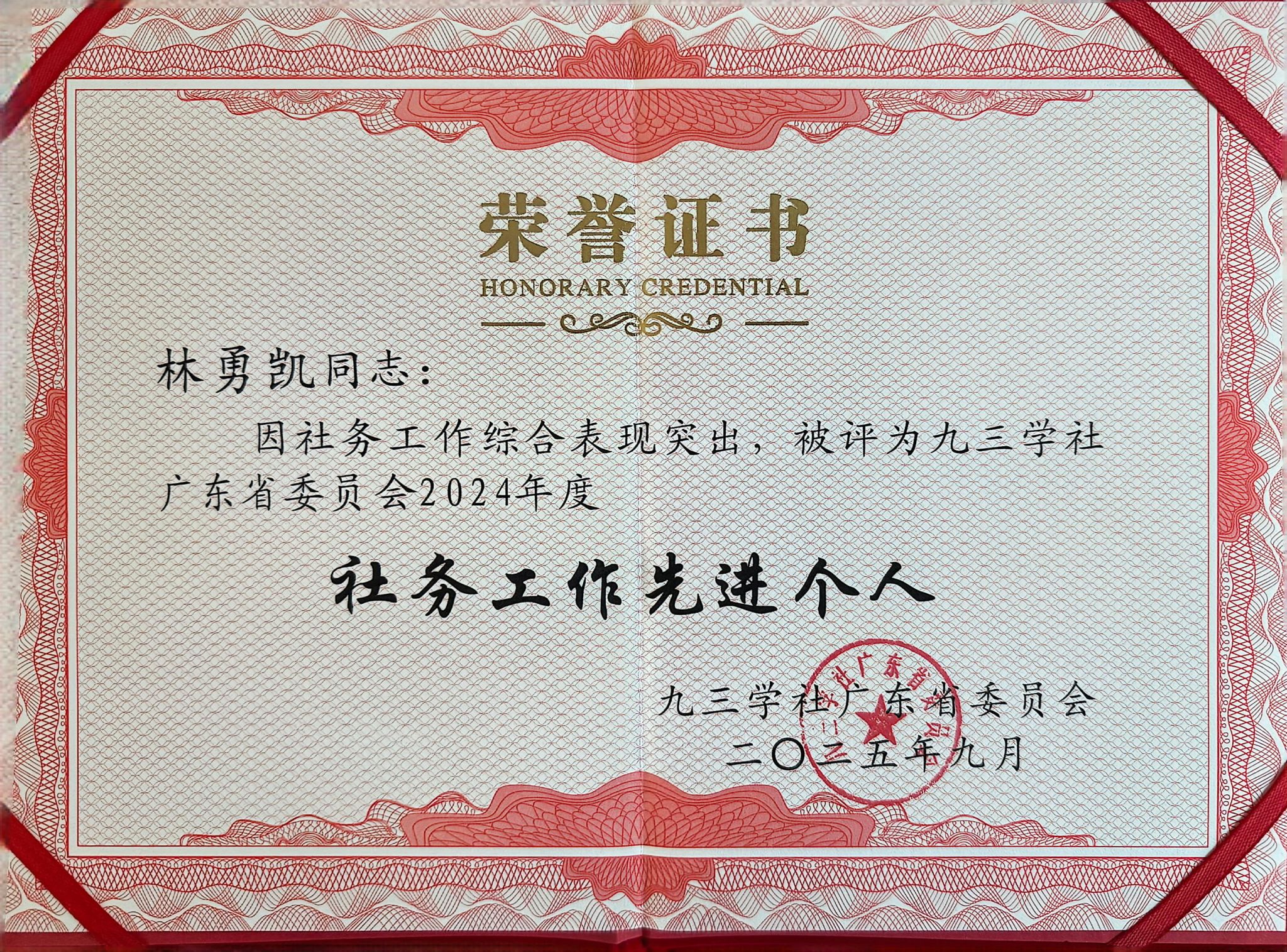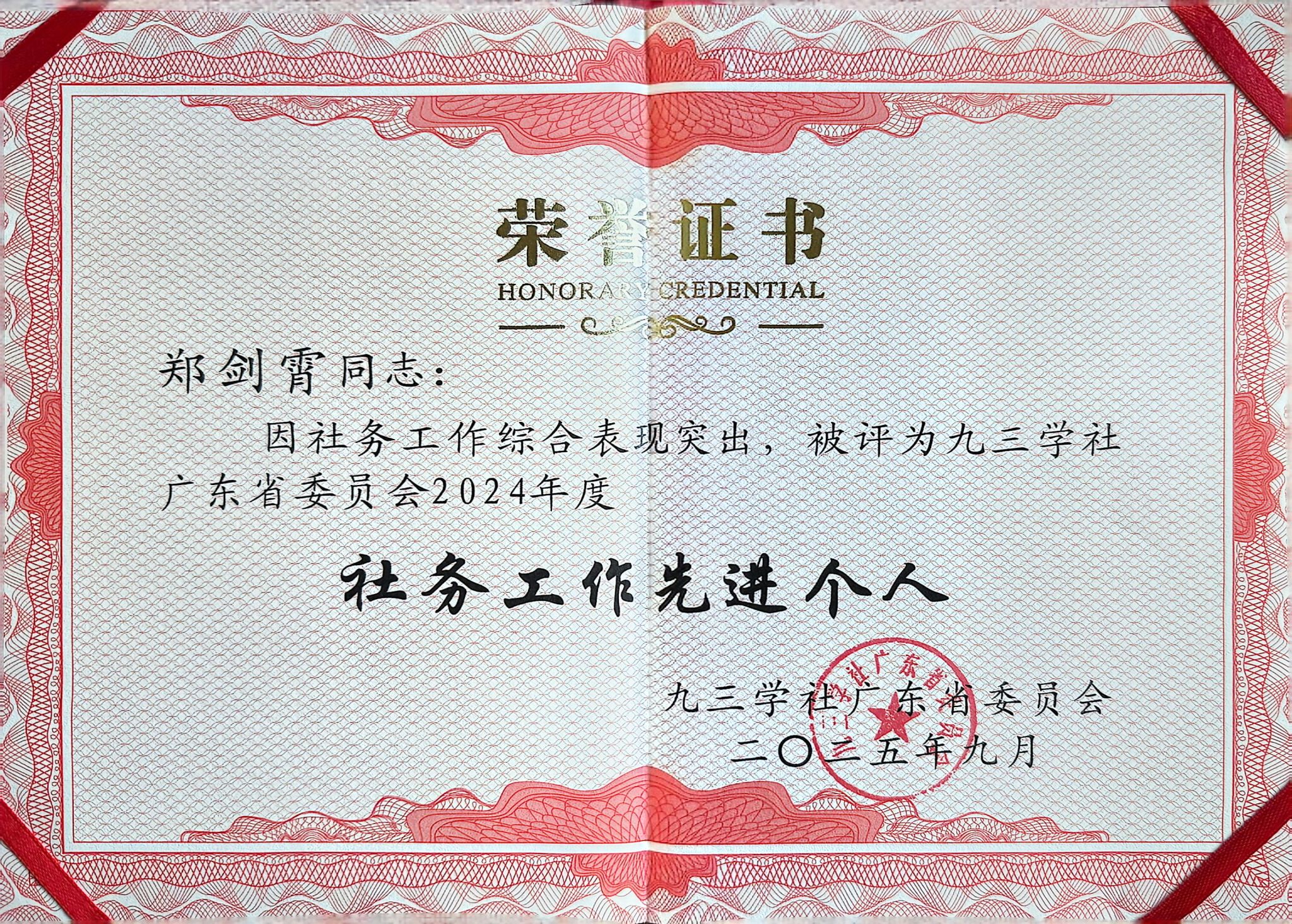 9月1日,九三学社广东省委会召开庆祝九三学社创建80周年大会,九三学社beat365英国官网网站基层委员会多位社员获得省级表彰。郑剑霄、赵婷秀、林勇凯、蒋志四位社员荣获2024年度“社务工作先进个人”称号,李穗晖社员荣获“九三健康粤科普大赛”三等奖。