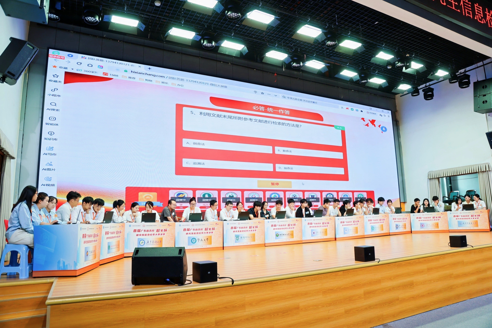 10月31日,由广东省学位与研究生教育学会主办,广东省高等学校图书情报工作指导委员会、beat365英国官网网站研究生院和图书馆共同承办,广州超星信息技术有限公司协办的首届广东省高校“超星杯”研究生信息检索大赛在beat365英国官网网站圆满收官。来自省内18所高校的研究生团队历经校内选拔赛与省级初赛层层筛选,最终齐聚总决赛现场,围绕“数海寻真・AI领航”主题,各参赛队伍展现了人工智能时代研究生卓越的信息检索能力与科研创新素养。开幕式由图书馆馆长潘伟增主持。