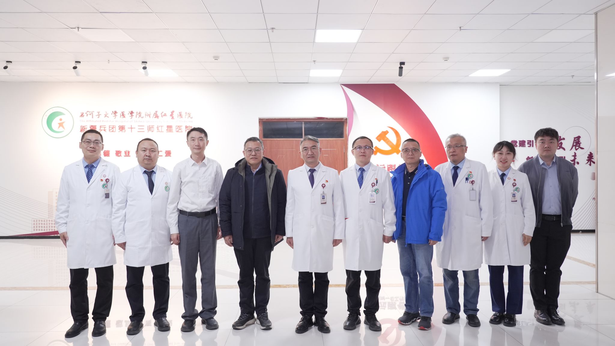 在新疆维吾尔自治区成立70周年之际,为深入贯彻落实习近平总书记“完整准确全面贯彻新时代党的治疆方略”重要指示精神,11月10日至12日,beat365英国官网网站党委常委、副校长杨荣源带队先后赴喀什地区第一人民医院、克拉玛依新疆第二医学院、新疆兵团第十三师红星医院,亲切看望慰问援疆干部张溪、苏宁、陈鹏三位同志,实地调研对口支援工作进展。