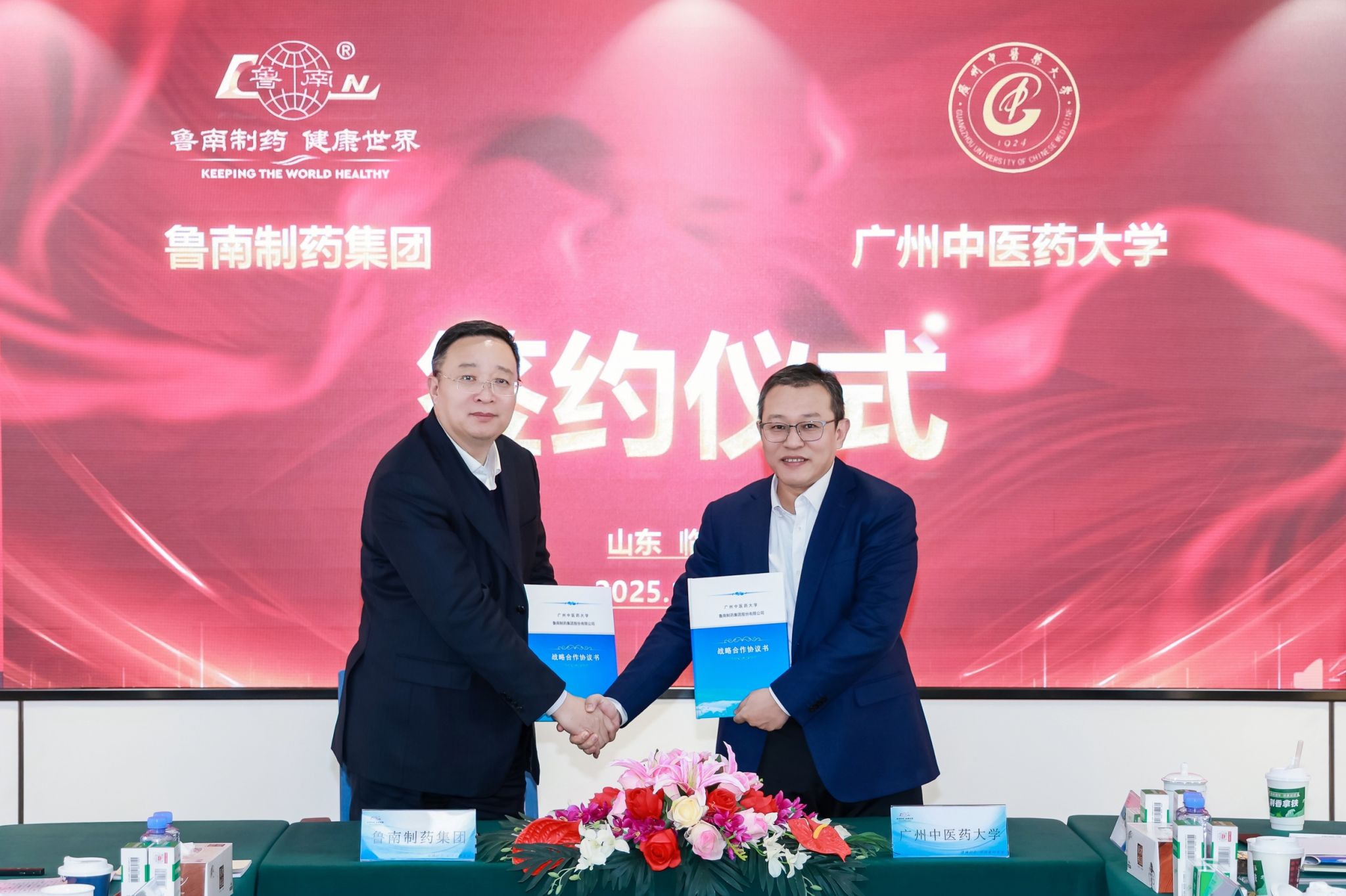 签约仪式上,杨荣源、张贵民代表双方签署战略合作协议。此次战略合作的达成,是学校深化校企合作、服务国家战略需求的重要举措。学校将持续发挥自身优势,与鲁南制药集团携手并肩,在中医药科研创新、人才培养、成果转化等方面深耕细作,共同开创中医药事业产学研融合发展新局面,为促进中医药传承创新、推动健康中国建设、服务全球健康事业贡献更大力量。