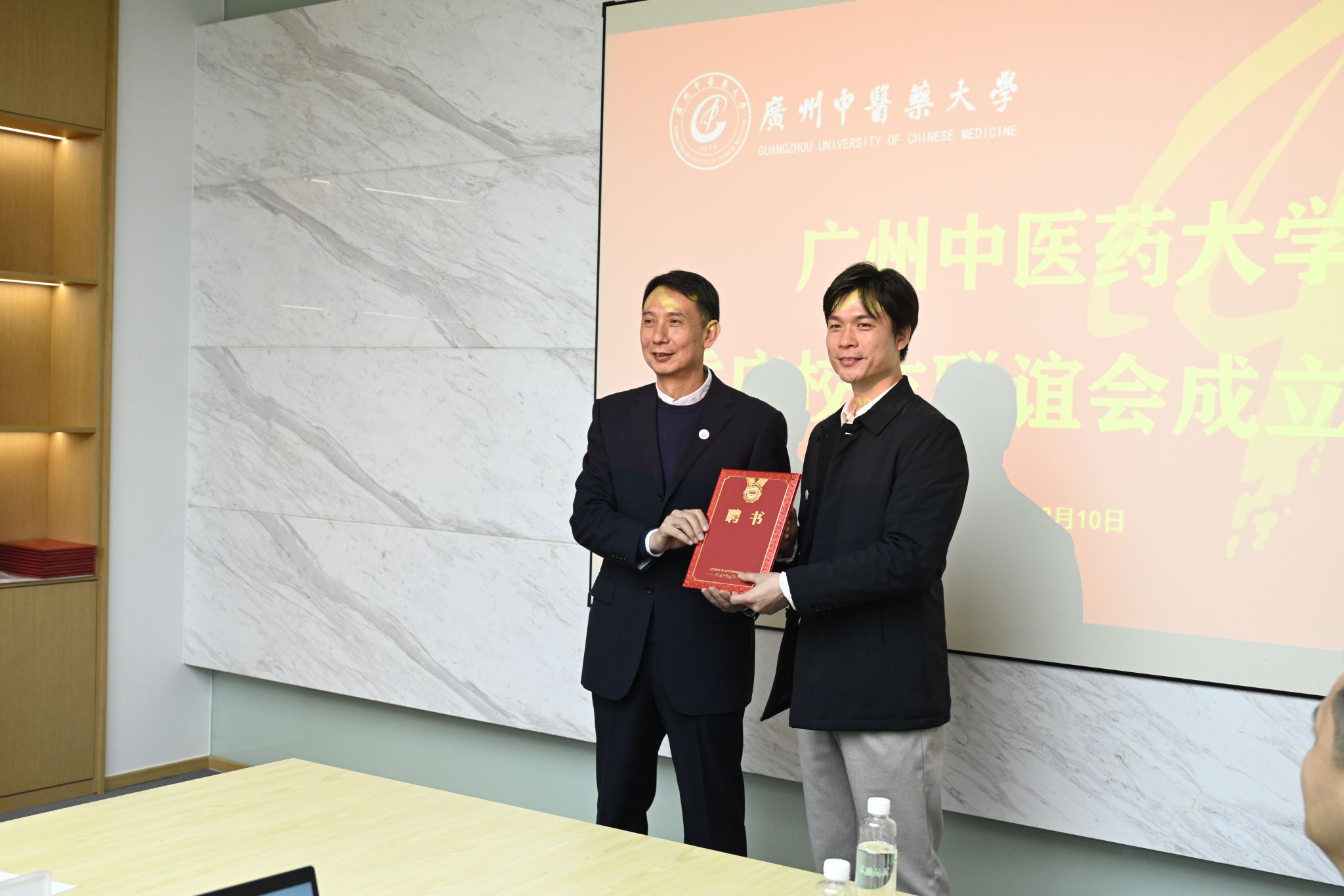 12月10日,beat365英国官网网站重庆校友联谊会成立大会召开。广州中医药大学党委常委、副校长郭鸿出席并为首届理事会成员颁发聘书。校友会(教育发展基金会)秘书长陈霖、副秘书长黄国富,科技创新中心党委书记喻良文,学校第一附属医院重庆院区(重庆市北碚区中医院)院长王雄文、副院长王运梅、药学部负责人李得堂,重庆地区校友和合作单位代表参加成立大会。