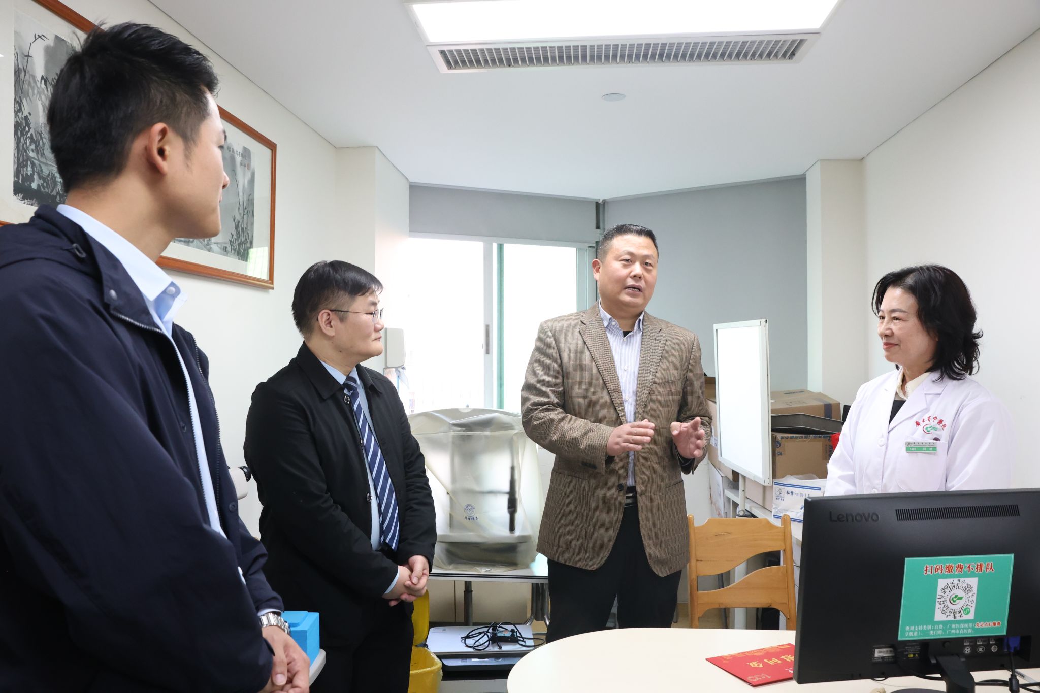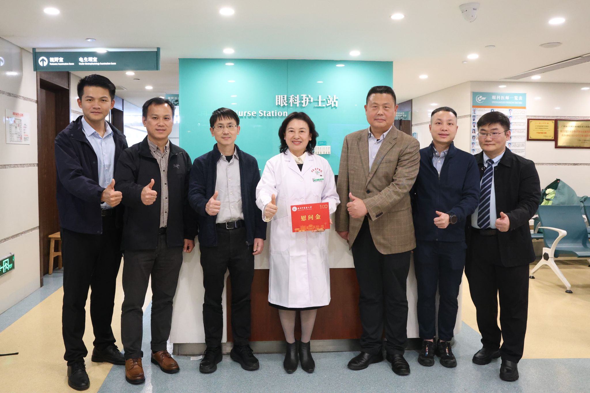 1月26日下午,民建beat365英国官网网站支部赴学校第二附属医院(广东省中医院)大德路总院,亲切看望慰问刚刚结束门诊的岭南名医、眼科专家、民建会员邱波教授。学校党委宣传统战部一同参加慰问,代表大学党委发放慰问金,表达学校党委对邱波教授的深切关怀和节日问候。