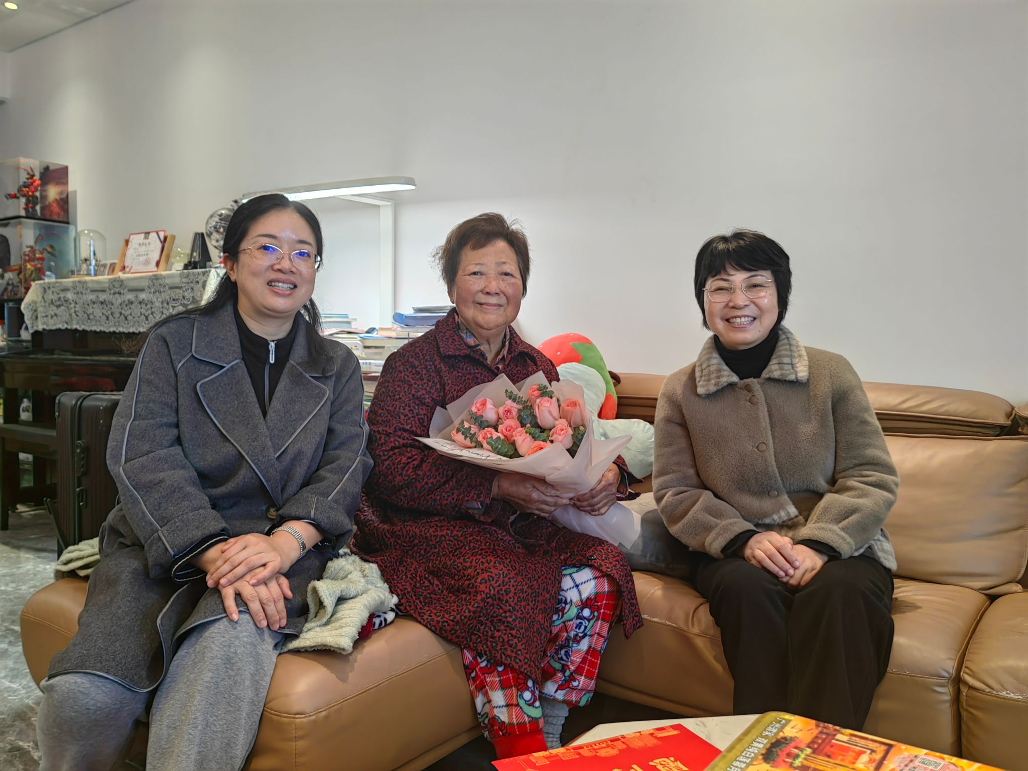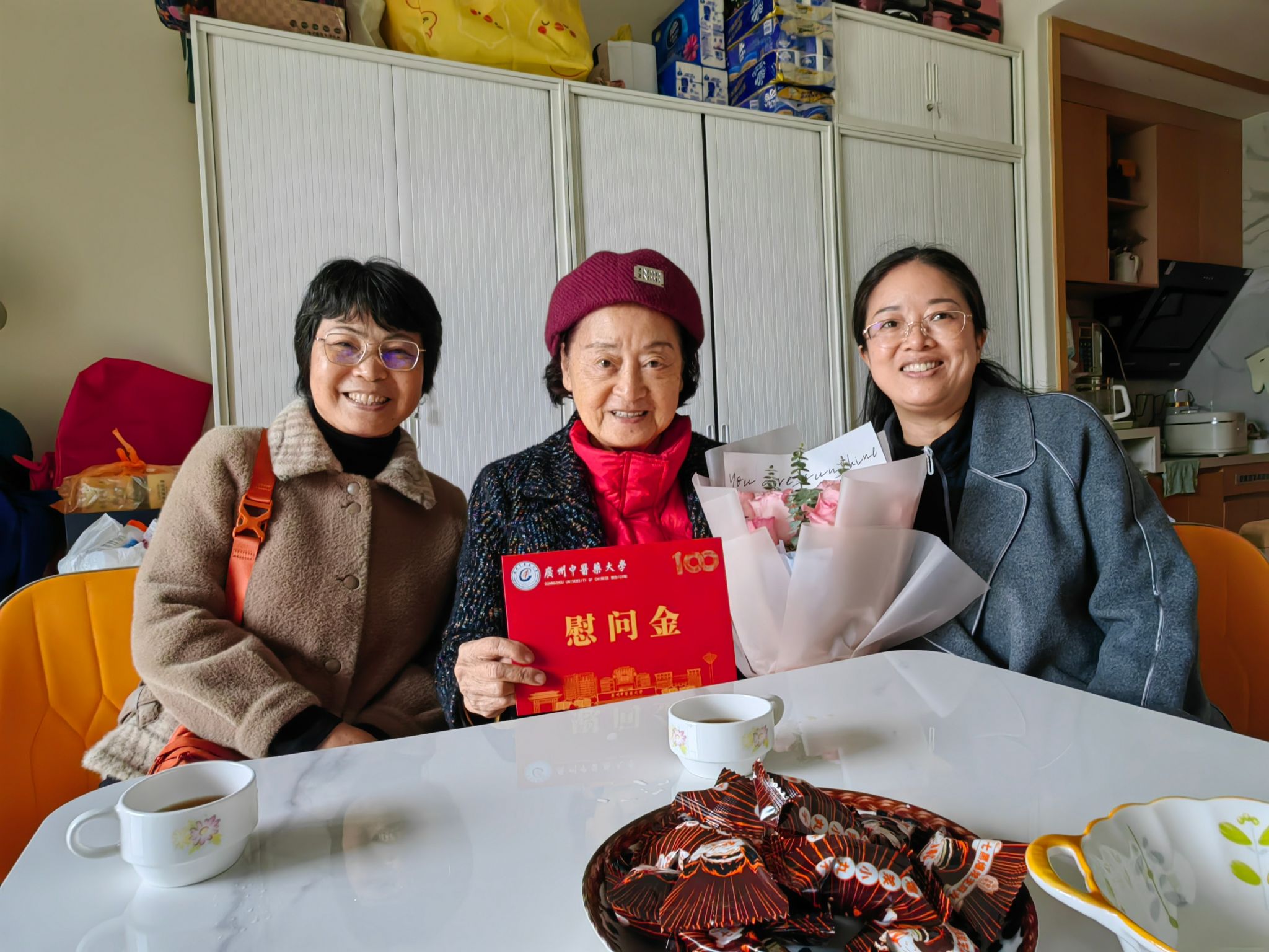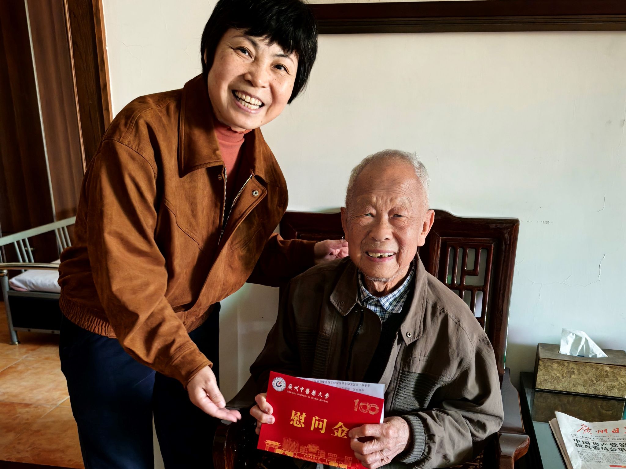 走访过程中,一幕幕温馨场景令人动容。90岁高龄的丘和明教授仍坚持每周出诊,精神矍铄;刘婉玲老师乐观开朗,每日以琴为伴;独居顺德养老院的杨佩玲老师,谈起任教岁月依旧目光熠熠;李展花老人为此次见面特意戴上心爱的围巾;蔡德丽老人深情回顾海外与医院工作的难忘岁月;黄鸿新老人虽言语不多,但眼神中流露出对来访者的温和接纳……这些长者虽年事已高,却依旧保持着对生活的热爱与从容,他们的笑容与感谢,深深温暖着每一位慰问人员的心。