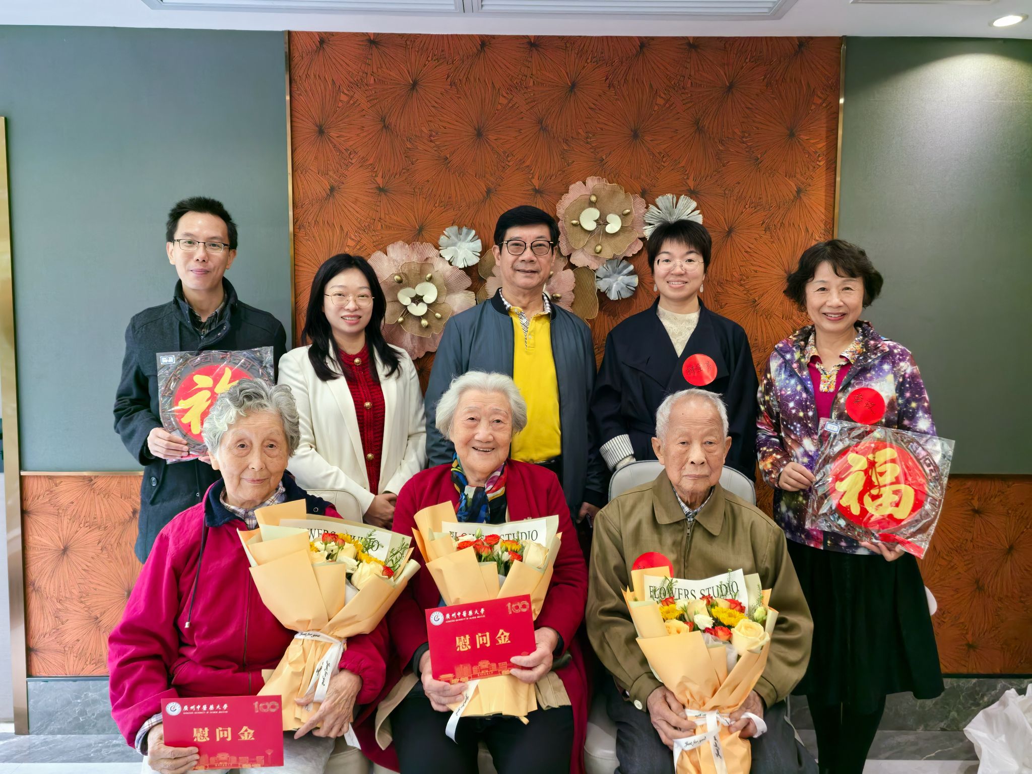 学校慰问致公党高龄党员(第一排左起依次为白勤安、韩玉洁、彭文炯)
