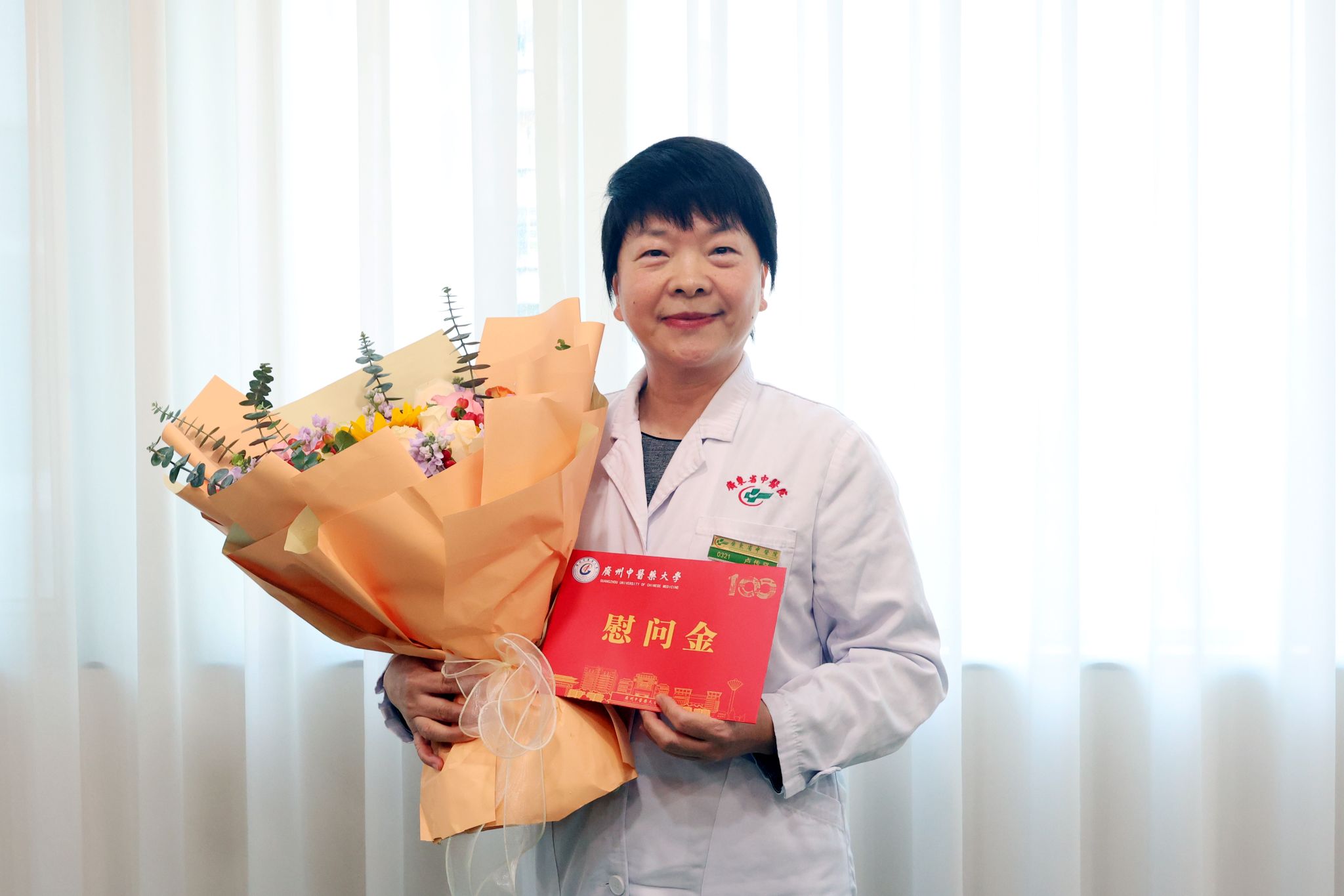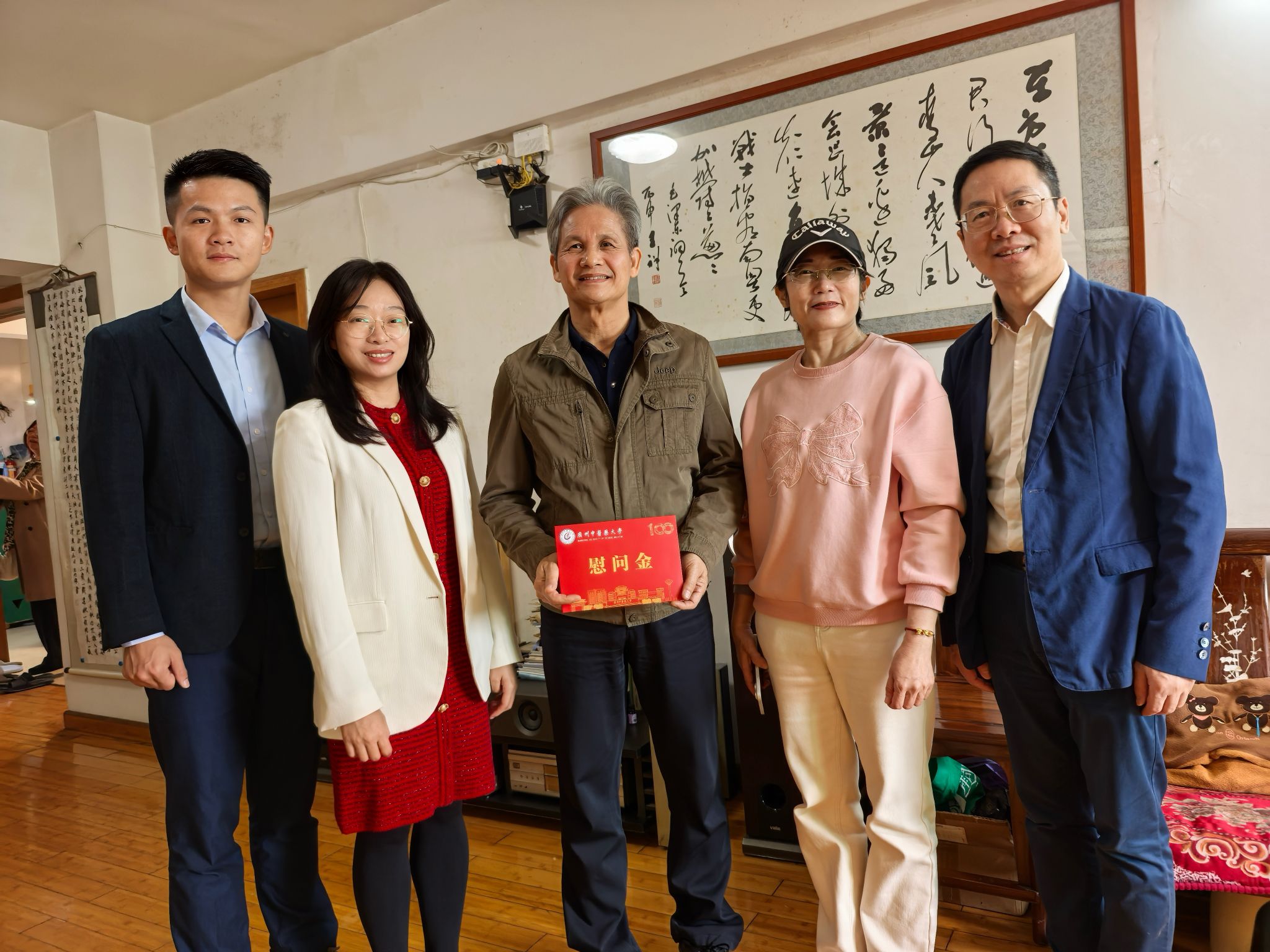 慰问邱灼雄教授(左三)