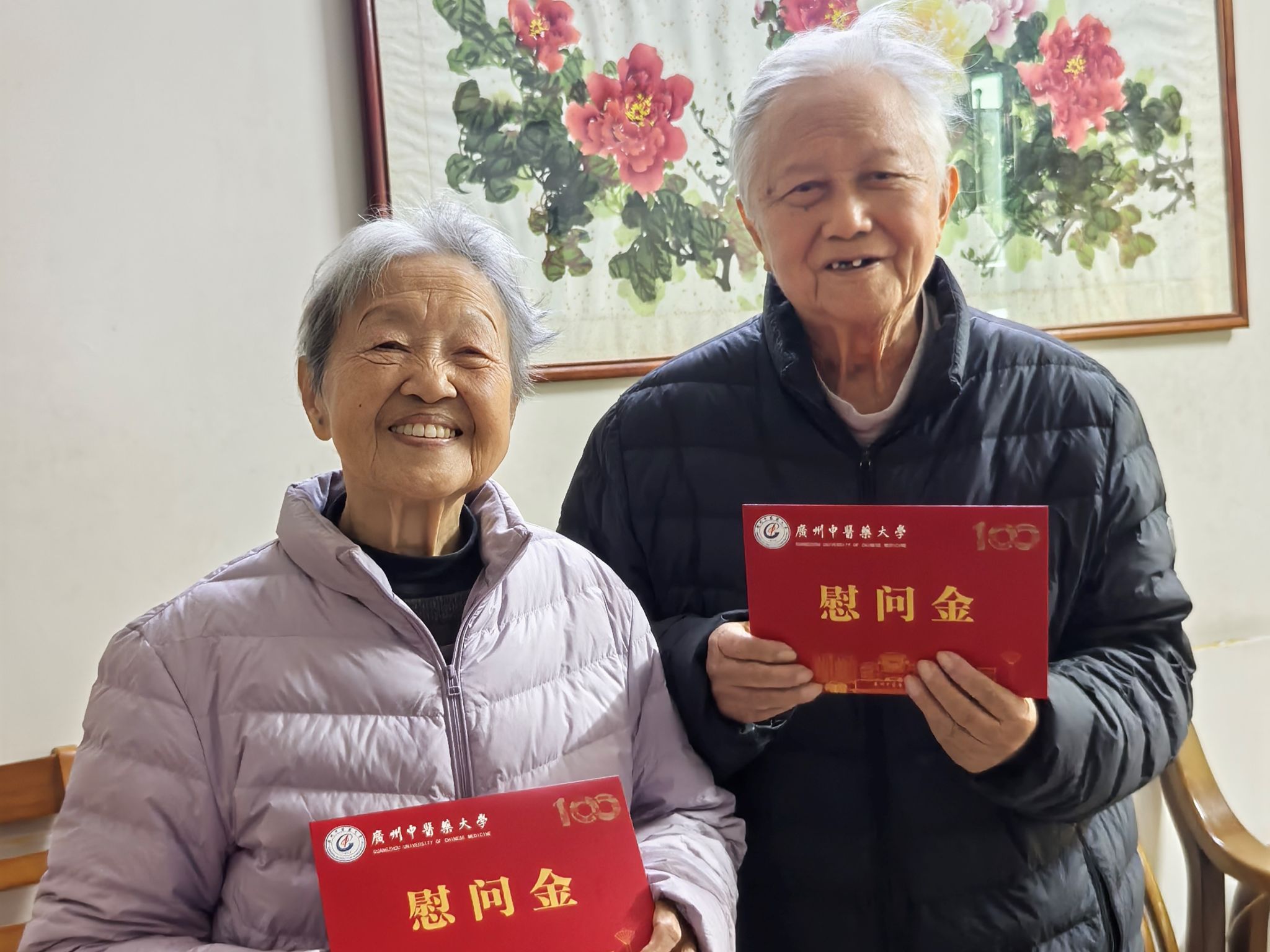 慰问黄景泉(右)、胡玉田(左)伉俪