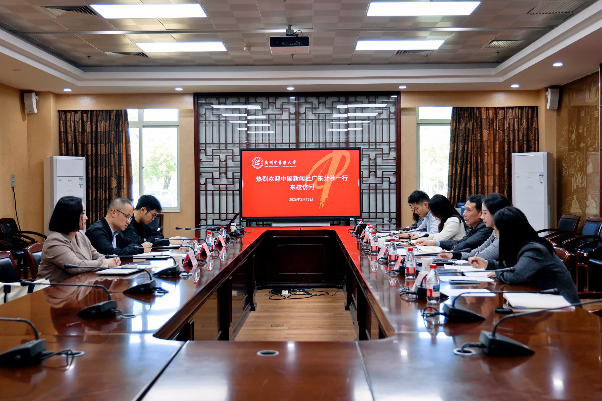 3月12日下午,中国新闻社广东分社编委会成员、新闻中心副主任郭军一行来访,学校党委常委、副校长郭鸿出席座谈会,学校党委宣传统战部部长、新闻与文化传播中心主任游江及部门相关工作人员参加会议。双方就国医大师邓铁涛诞辰110周年主题宣传、统战宣传、中医药文化海外传播等议题开展深入交流与研讨。