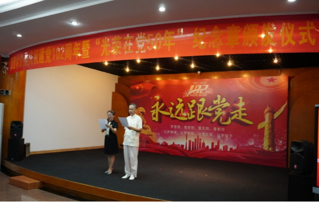 纪念章颁发仪式后,离退休党委各支部以独唱、合唱、诗朗诵等节目表达了对党的热爱和生日的祝福。