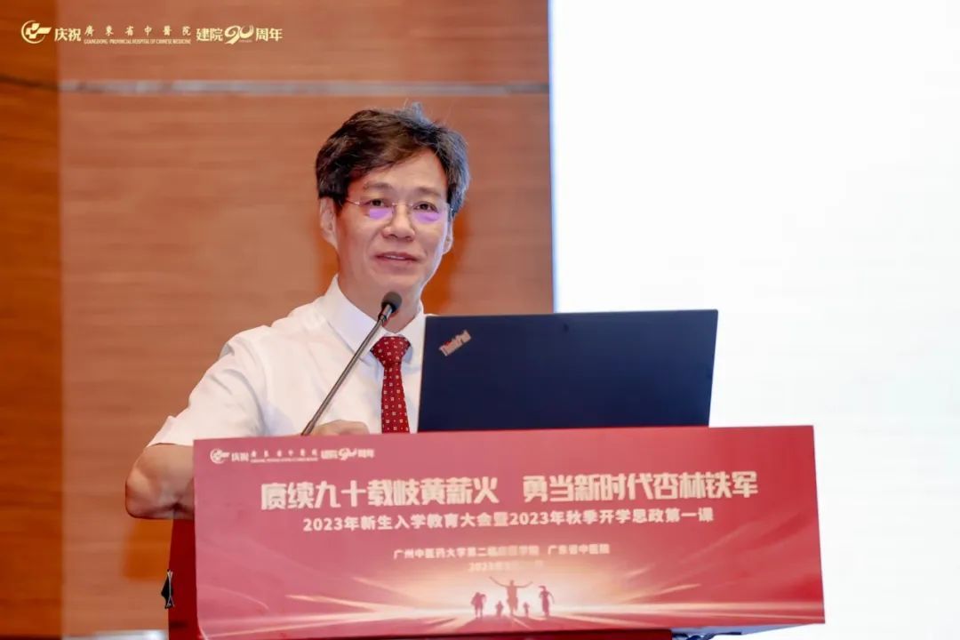 9月23日,beat365英国官网网站第二临床医学院2023年新生入学教育大会暨2023年秋季开学思政第一课在大学城医院学术报告厅举行。学校党委常委、副校长、第二临床医学院(第二附属医院、广东省中医院)院长张忠德讲授“思政第一课”。
