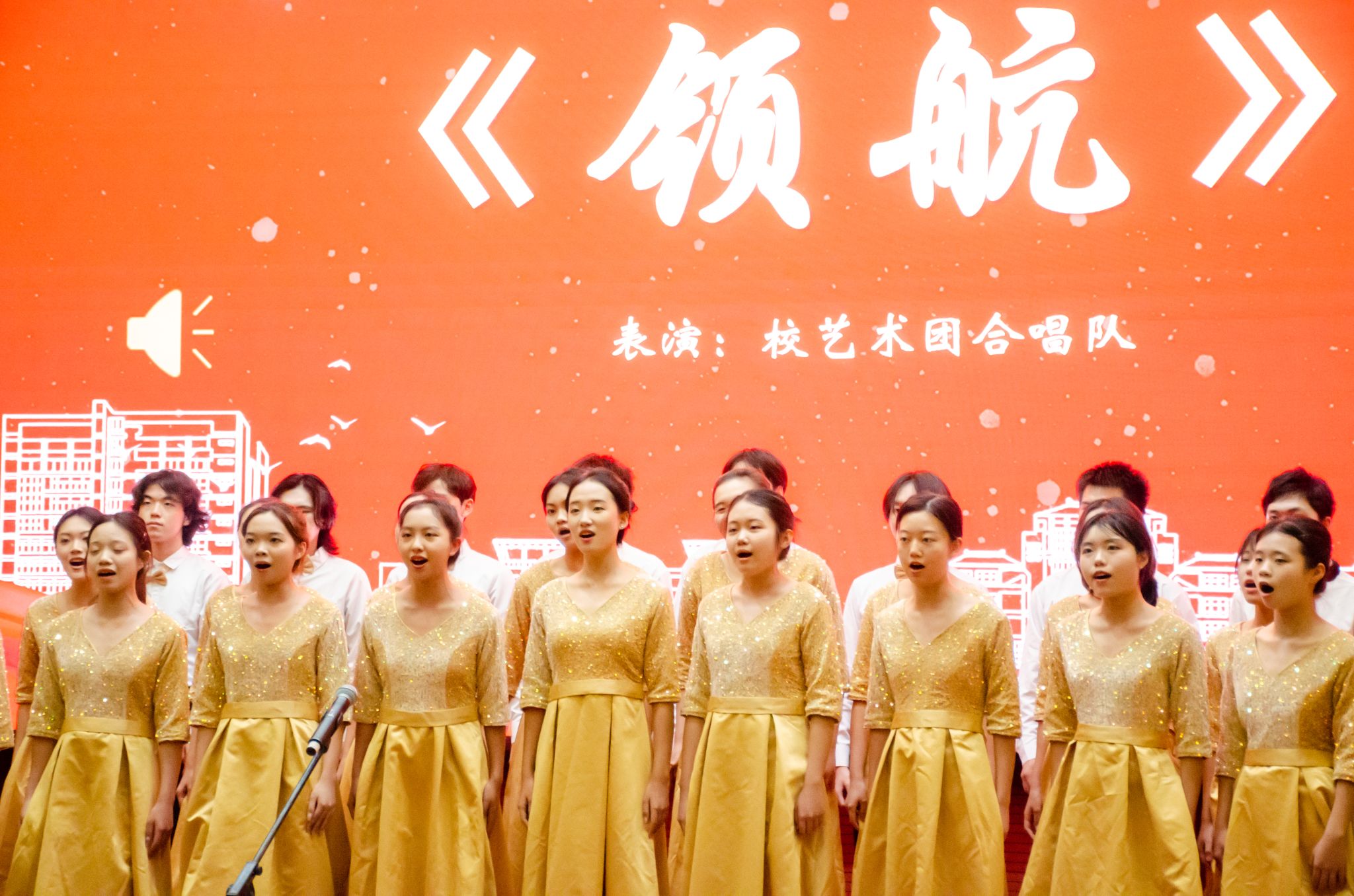 宣讲会以2023年校庆主题原创音乐《岐黄之邦》拉开序幕,燃起全场师生对中医药文化的热爱之情。通过场景化、沉浸式的《典籍里的中医——白芍之事》舞台剧表演,生动讲述了白芍花的药用价值,引领师生阅读典籍、对话前辈医家,感受深厚的中医药文化底蕴。校艺术团合唱队深情合唱《领航》,激励着广大师生砥砺前行,把宣讲会活动推向高潮。