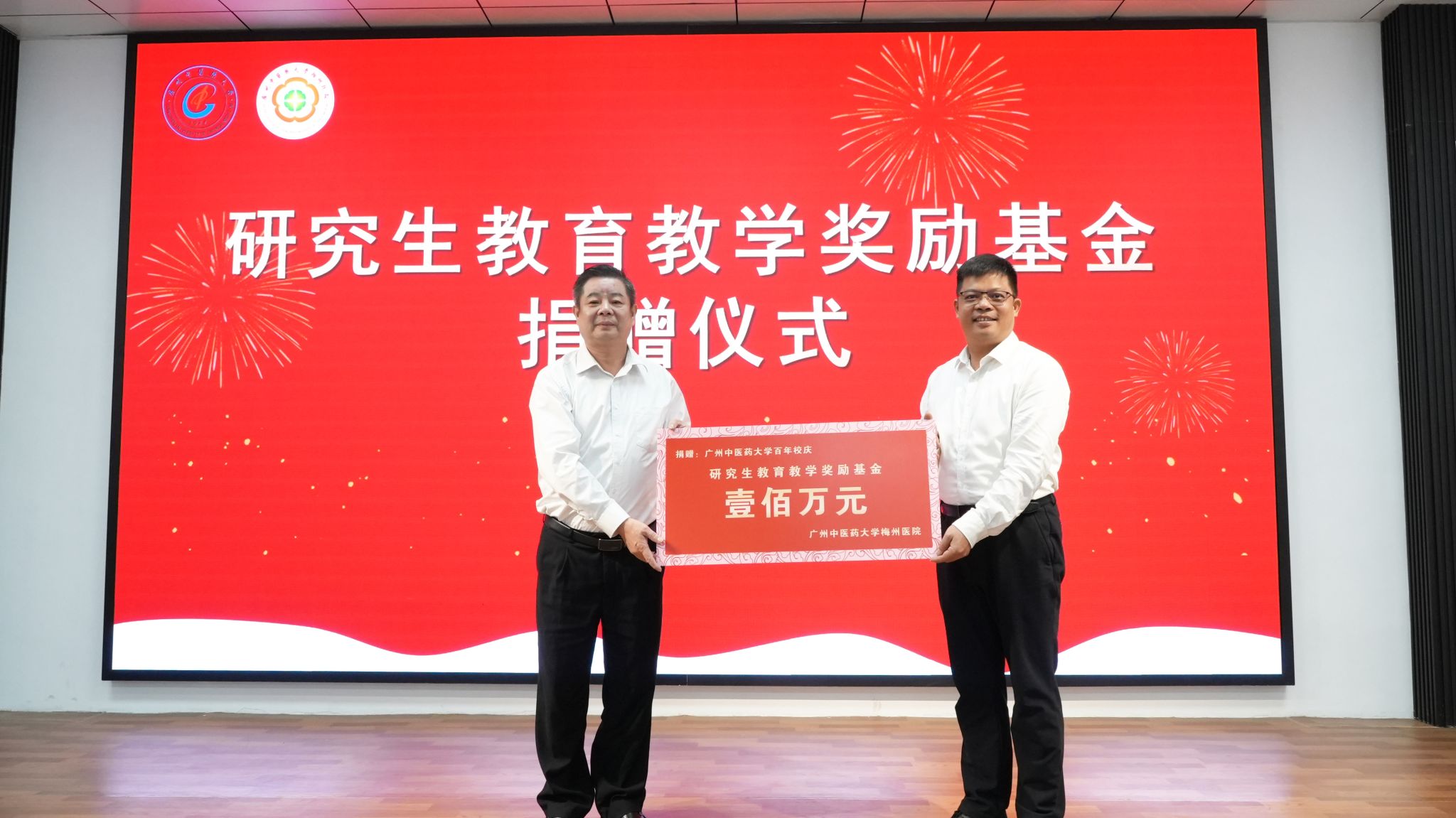 活动上举行了研究生教育教学奖励基金捐赠仪式。郑青代表梅州医院向beat365英国官网网站捐赠人民币100万元,邱亚洪代表beat365英国官网网站接受捐赠款项。捐赠款项将专项用于大学奖励研究生教育教学工作。今年适逢beat365英国官网网站建校100周年,该笔捐赠也是学校百年校庆启动以来,八家校政共建医院中的首笔捐赠。