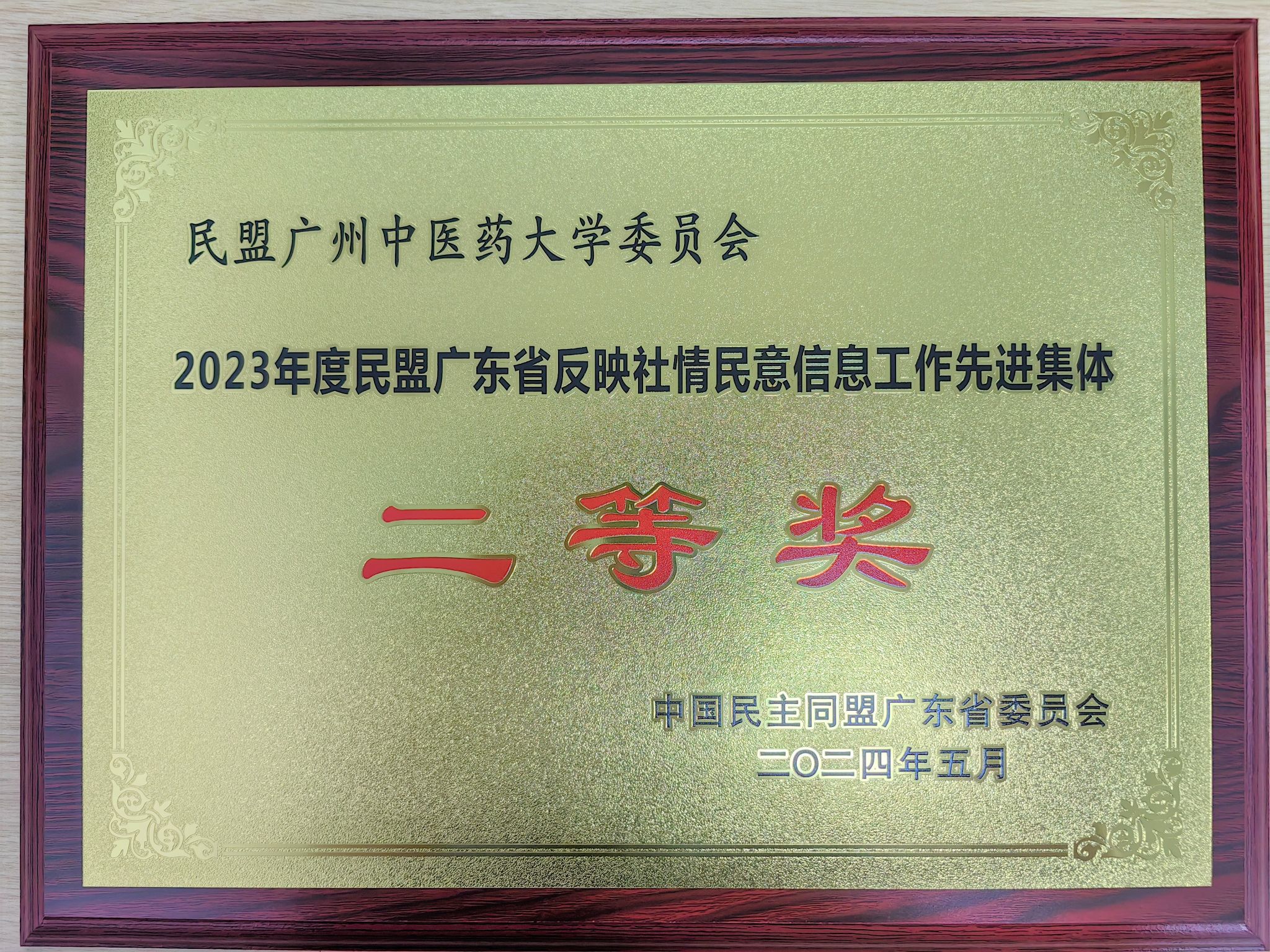 民盟大学基层委员会荣获民盟广东省委会2023年度民盟广东省反映社情民意信息工作先进集体“二等奖”