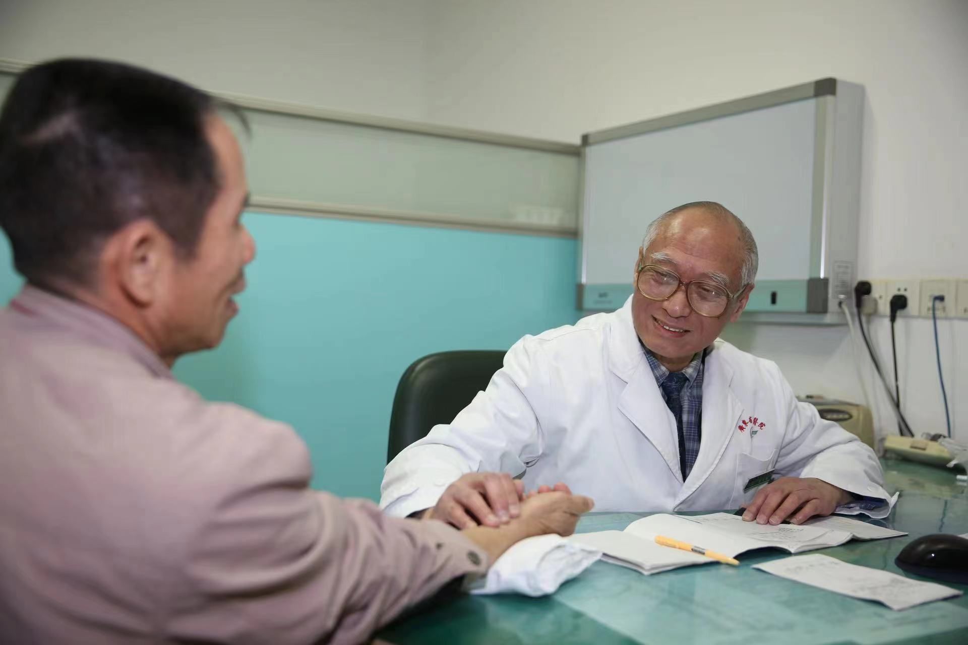 农工党党员黄宪章教授在二附院大院骨科门诊为患者号脉