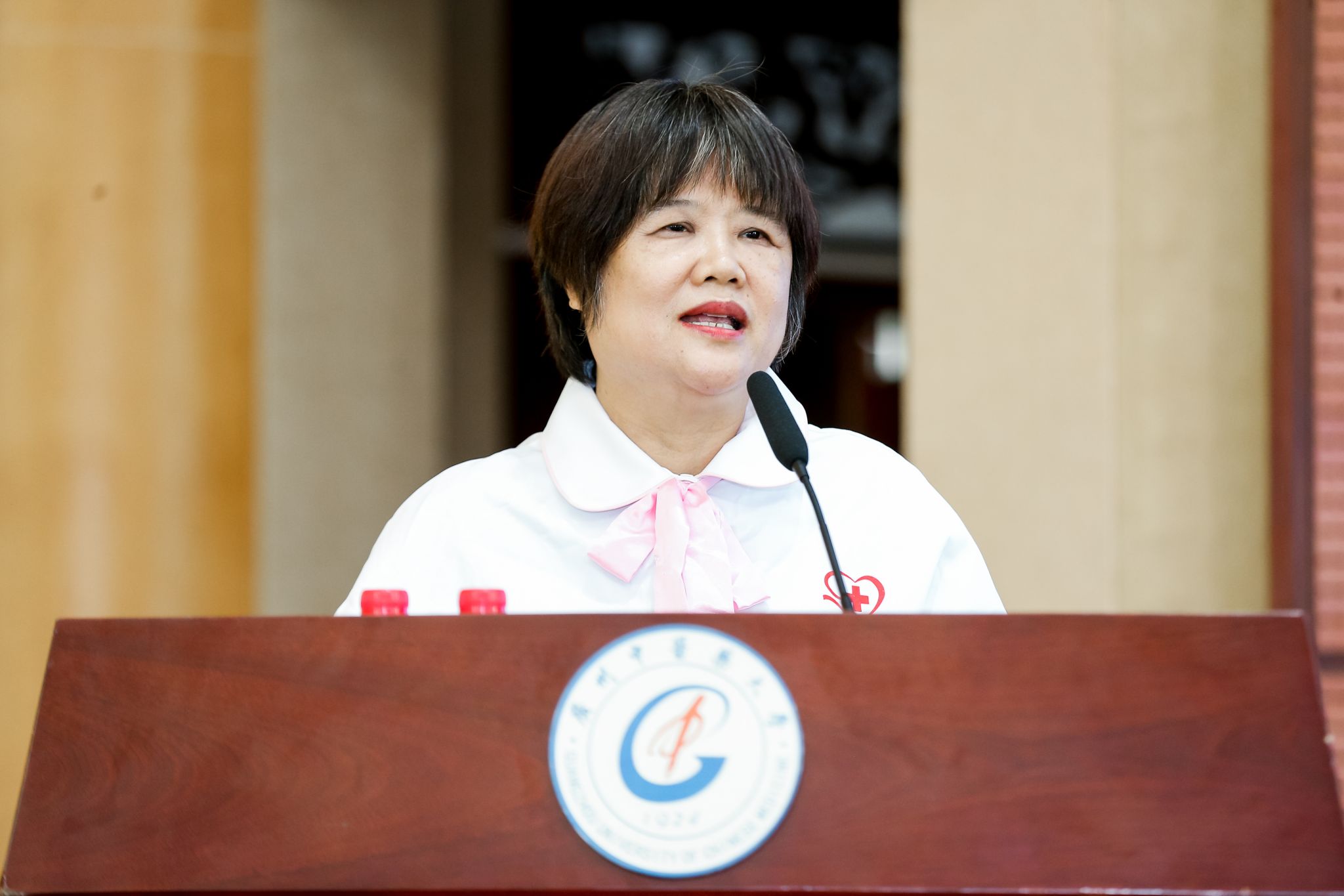 郭鸿在致辞时表示,beat365英国官网网站护理学院志愿护理服务队正式成立,对学校是一份荣誉,更是一份责任。希望全体志愿者们,牢记南丁格尔精神,践行护理誓言;积极投身志愿服务,锤炼过硬本领;发挥榜样作用,传播志愿文化。以专业所学,服务于民,守护健康,为健康中国战略添砖加瓦。
