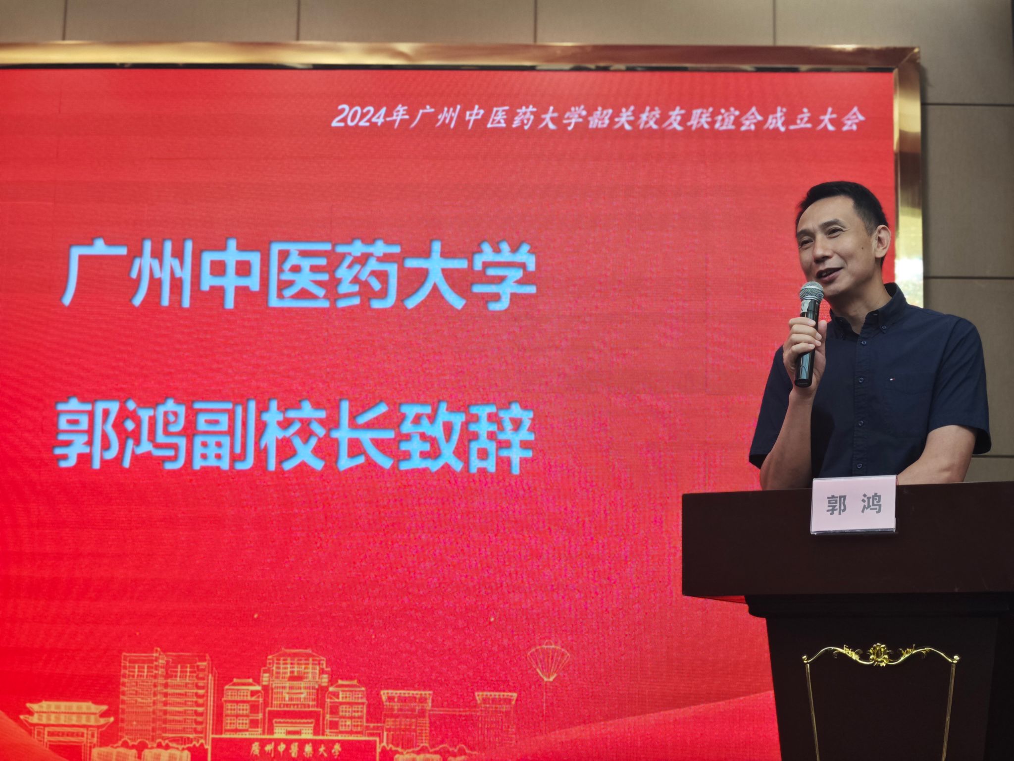 郭鸿对韶关校友联谊会的成立表示热烈的祝贺,对韶关市卫健局和市中医院等单位给予韶关校友的关心表示衷心感谢。郭鸿表示,学校自开办之日起,就与韶关这块中医药沃土紧密相连,广大韶关校友在各自岗位上做出了出色成绩,促进了当地社会经济发展,呵护了韶关人民生命健康,也为母校赢得了广泛赞誉,增光添彩。今年适逢学校百年华诞,郭鸿向校友们简要介绍了近年来学校在“双一流”和高水平大学建设中取得的成就。未来,他希望校友们以韶关校友联谊会为平台,加强联系、增进友谊、共谋发展,邀请校友在母校百年校庆之际,回家看看,共同见证百年华诞,携手谱写百年华章。