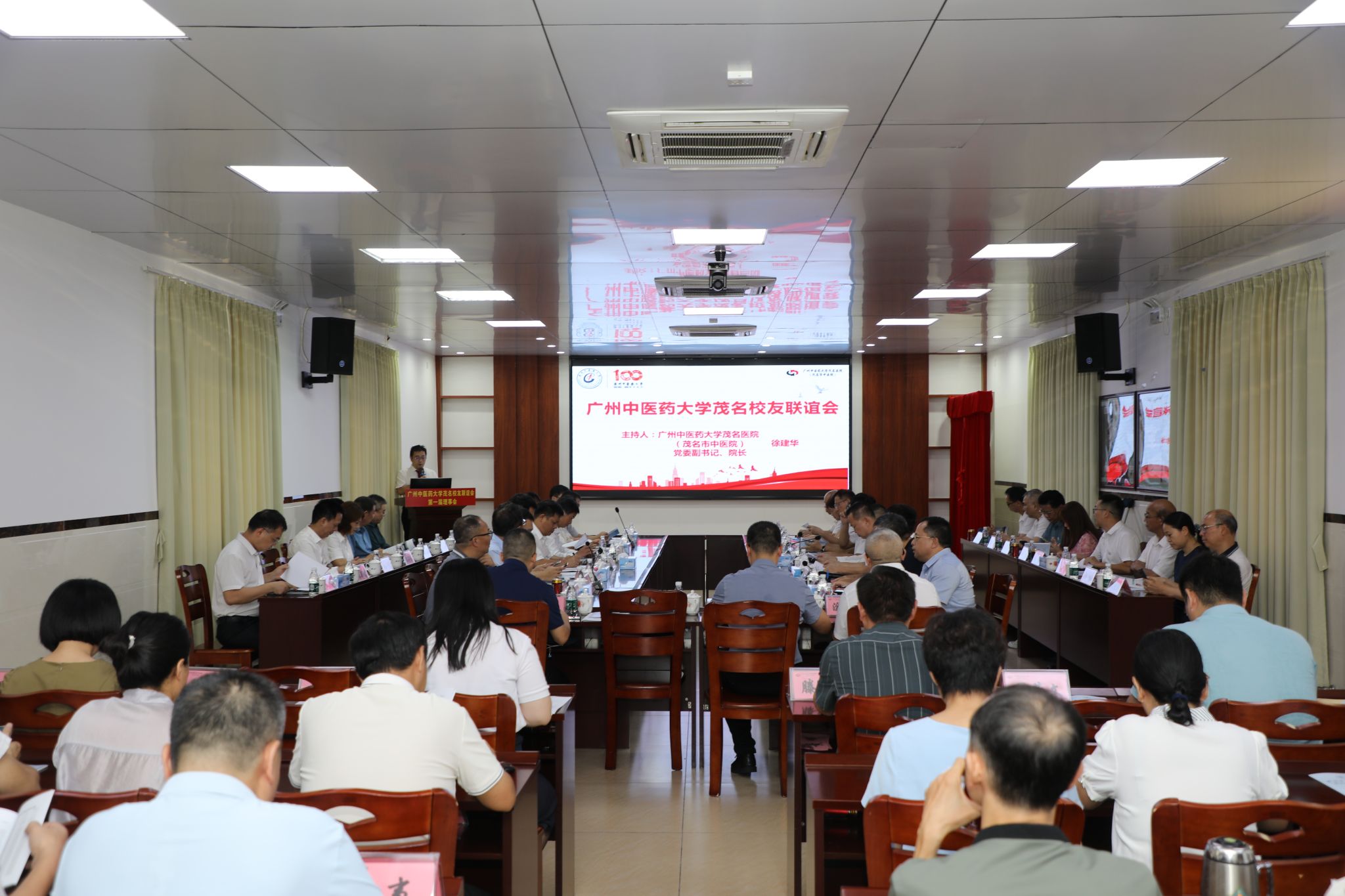 7月27日下午,beat365英国官网网站茂名校友联谊会(联络站)成立大会在beat365英国官网网站茂名医院(茂名市中医院)举行。学校党委副书记邱亚洪,广东省民族医药协会会长、原学校党委常委、副校长梁沛华,茂名市卫生健康局党组书记、局长何泽添,茂名市中医院党委书记黄绵, 茂名市中医院党委副书记、院长徐建华,茂名校友以及学校和医院相关职能部门负责同志参加会议。