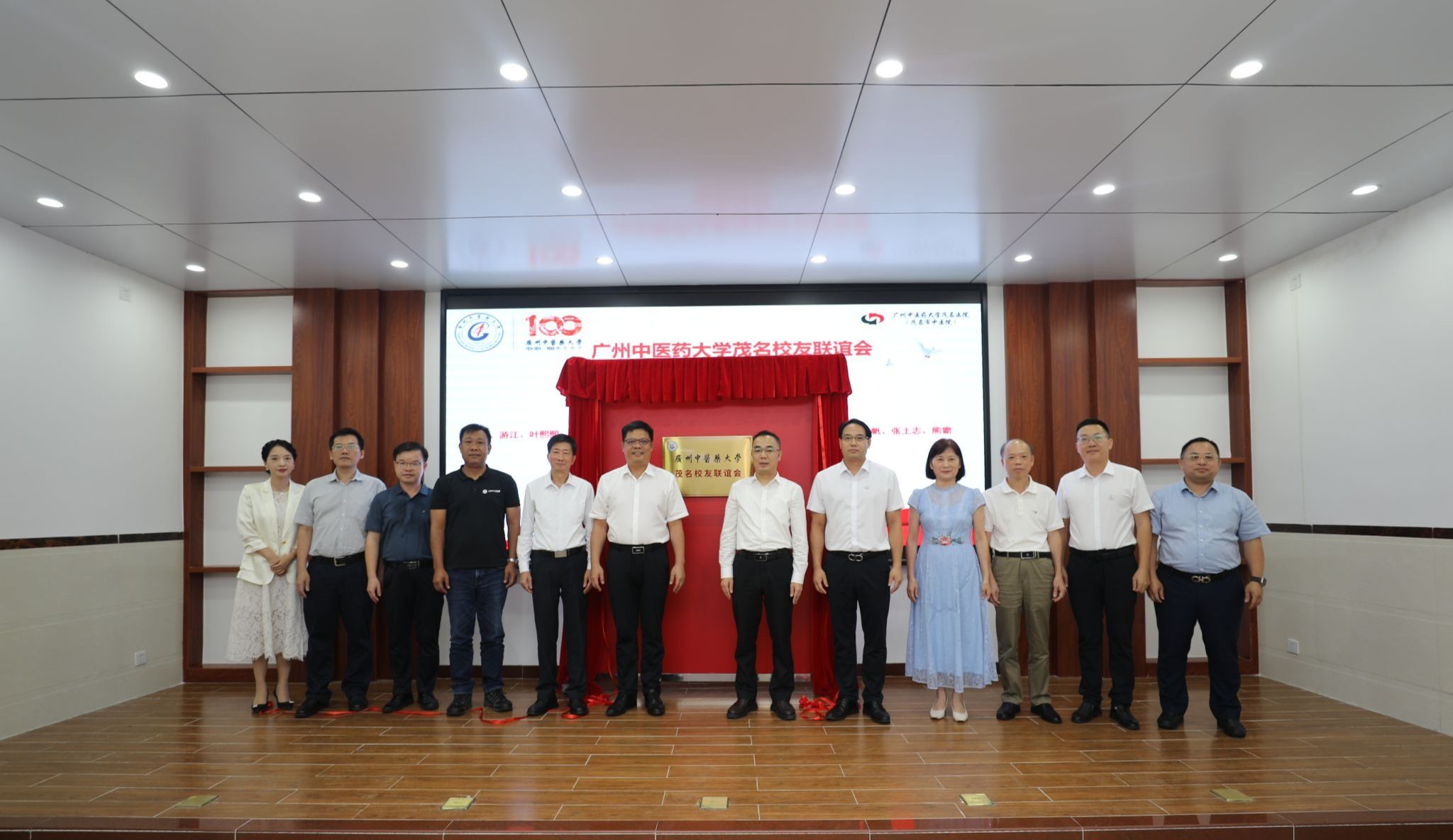 邱亚洪副书记为beat365英国官网网站茂名校友联谊会揭牌,并为理事会成员代表颁发了聘书。