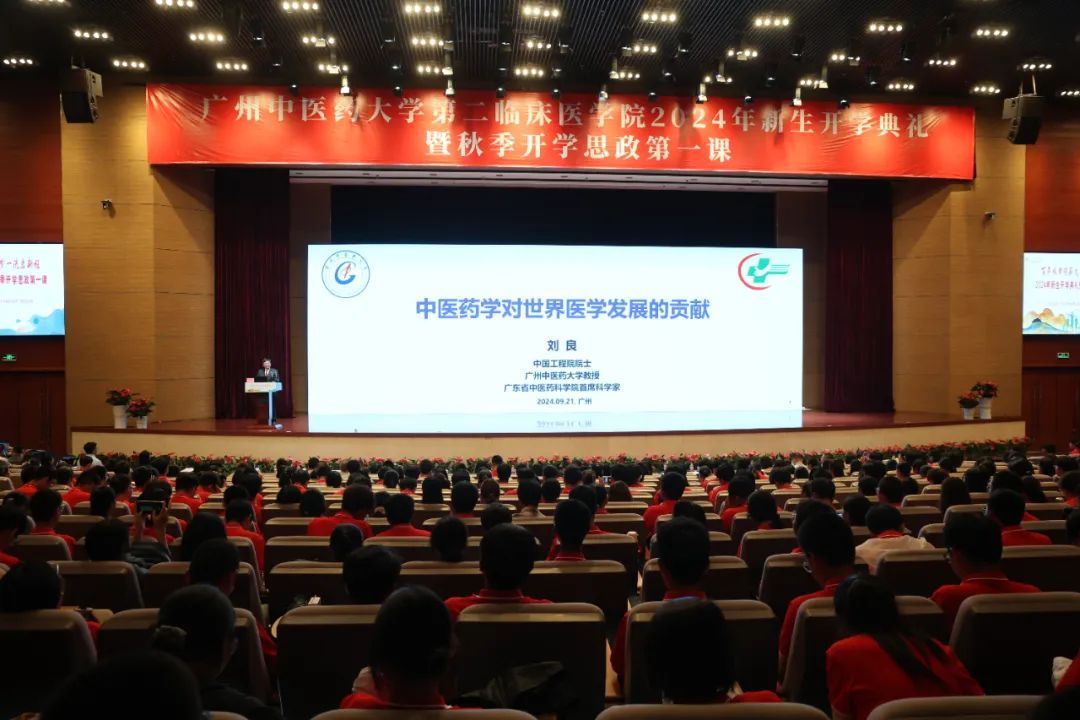 中国工程院院士、beat365英国官网网站教授、广东省中医院(广东省中医药科学院)首席科学家刘良,beat365英国官网网站党委常委、副校长,第二临床医学院院长、党委副书记张忠德,第二临床医学院党委书记史俏蓉,为912名2024级本科和研究生新生讲授思政第一课。第二临床医学院党委副书记、纪委书记蒋四川,以及学院相关职能部门负责人参加。第二临床医学院党委副书记谭利斌主持。