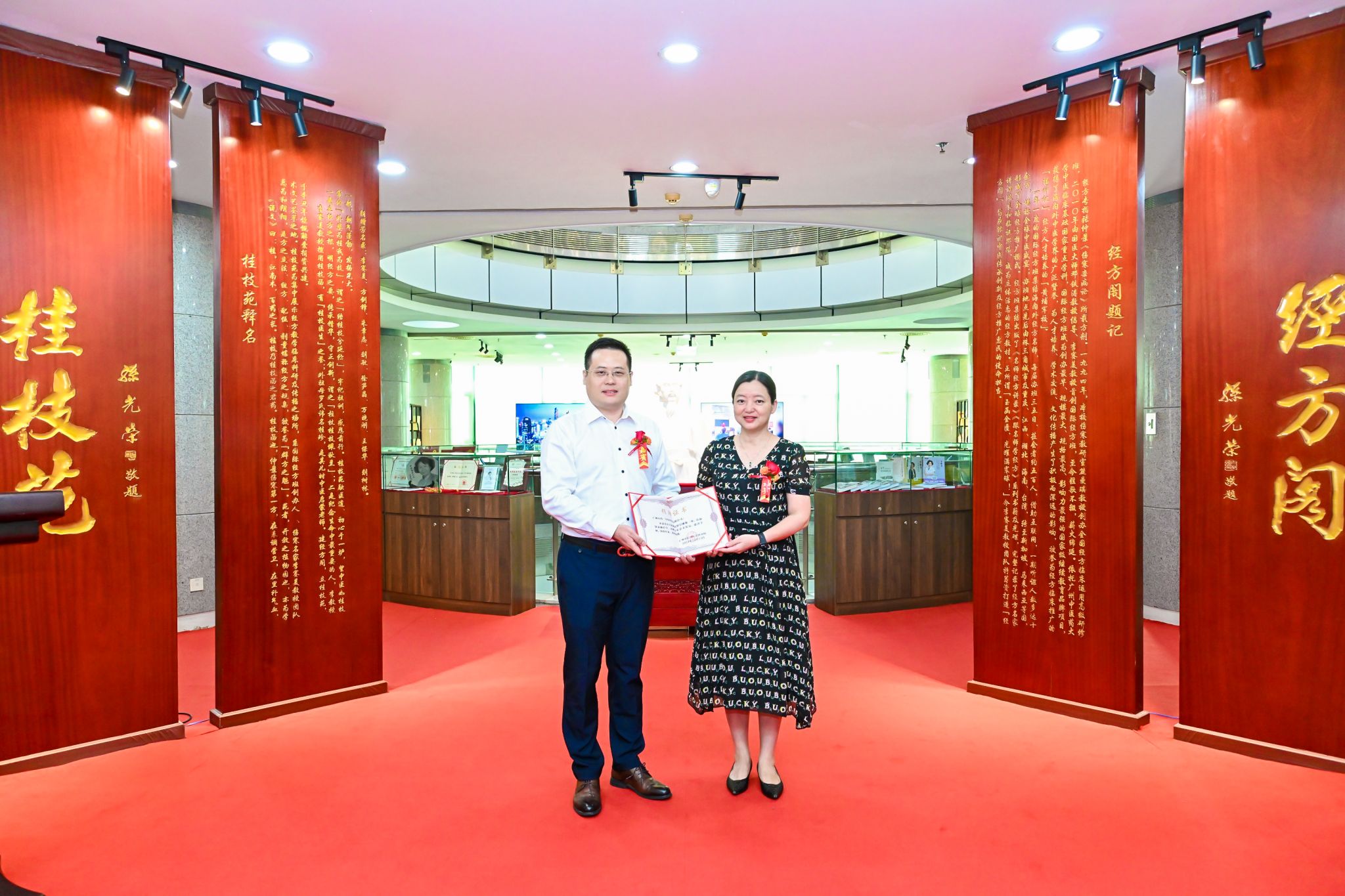 beat365英国官网网站党委常委、副校长潘华峰,beat365英国官网网站第一附属医院副院长关彤,beat365英国官网网站第一附属医院经典临床研究所所长李赛美,张仲景博物馆馆长刘海燕,香港浸会大学中医药学院院长李敏,香港大学董爽教授,澳门科技大学陈敏副教授,新加坡中医学院刘洋董事,广州五得一中医科技有限公司董事长武传强、总经理李伟鹏,以及学校有关职能部门和二级单位负责人莅临现场。捐赠仪式由图书馆馆长潘伟增主持。