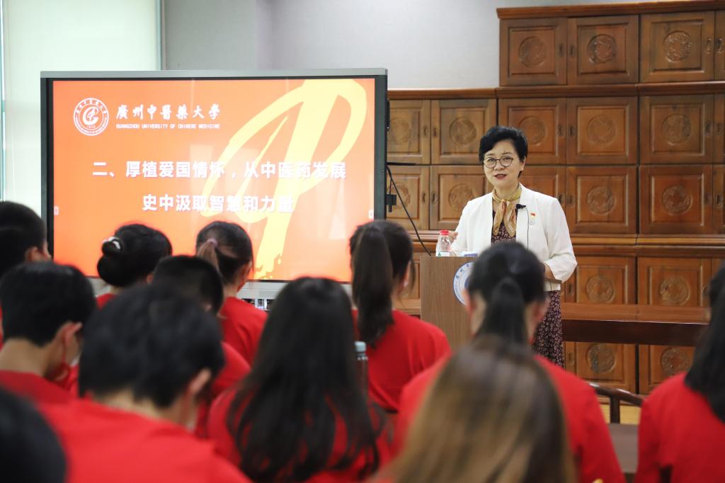 面對着台下的2021級中醫學境外班(一院)學生的港澳學生,張建華指出,中國共產黨百年奮鬥史,也是中醫藥的傳承發展史,作為中醫學的學生,同學們要從黨史和中醫藥發展史中汲取智慧和力量,堅定中醫藥文化自信,承擔起中醫藥人的歷史使命,推動中醫藥振興發展。