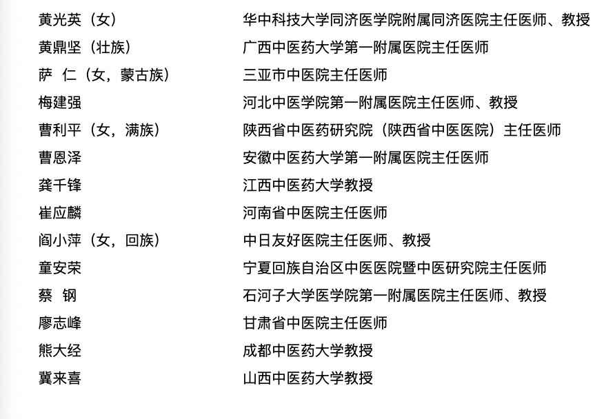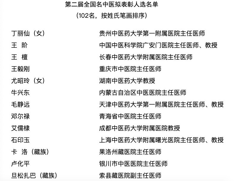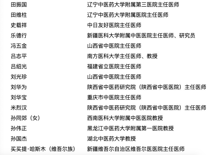 附国医大师与全国名中医名单→