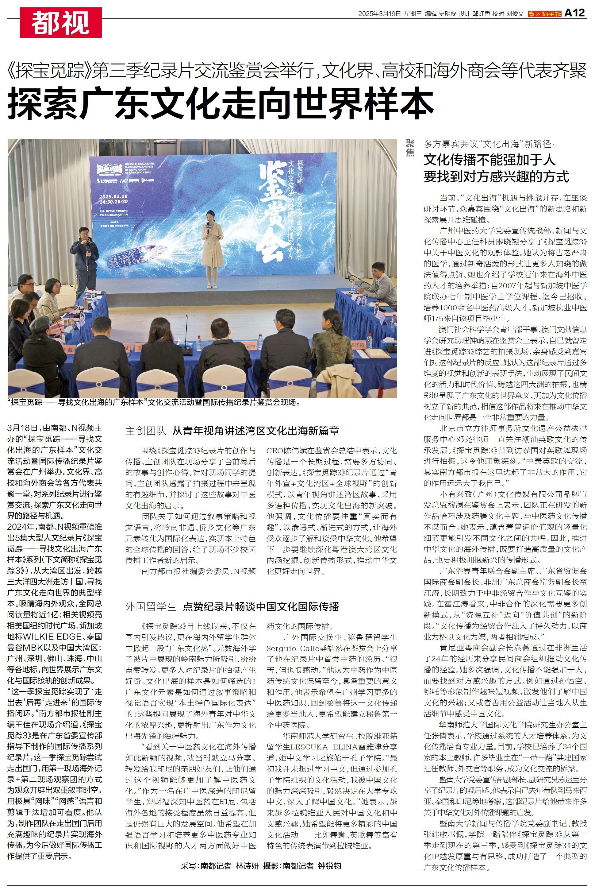 下一条:羊城晚报:6名拉脱维亚记者来穗取景,用镜头定格羊城春日风采,纪录片制片人称要把在广州的美好体验分享给欧洲观众”