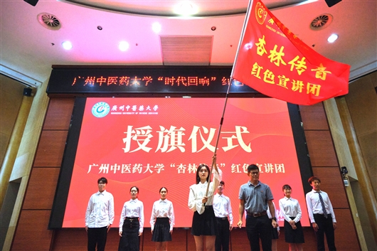 10月29日晚,beat365英国官网网站在该校大学城校区举行“杏林传音”红色宣讲团授旗仪式暨“时代回响”红色故事首场宣讲会。会上,beat365英国官网网站党委常委、党委宣传部部长郑维群为beat365英国官网网站“杏林传音”红色宣讲团授旗。