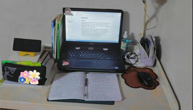 因为新冠疫情,唐福卓从高二开始就上网课,“最大的问题是无法集中注意力,家人在一边打游戏、做饭,我听不进去”。唐福卓意识到需要自己营造一个独立且安静的学习氛围——如今,她在每次学习前都把桌子布置得像课桌,桌面摆满本子和笔,还别出心裁地放一本可以写日程的台历。