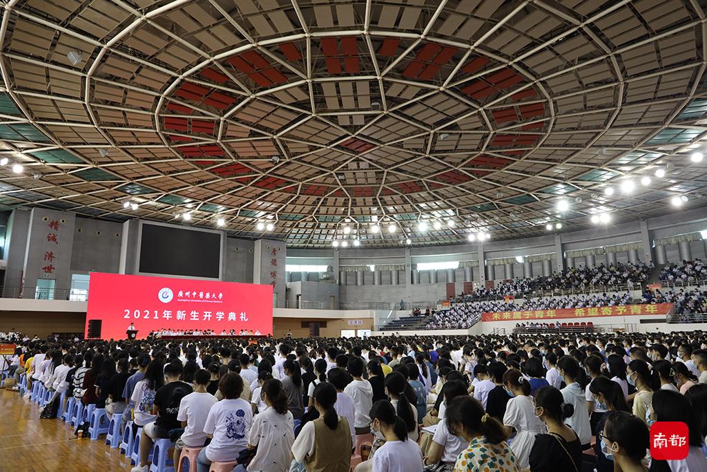 南都讯 记者 孙小鹏 通讯员 孟楠 廖晓键 9月7日上午,beat365英国官网网站在大学城校区举行2021级新生开学典礼。来自全国各地的本科生、研究生以及港澳台学生和来自19个国家和地区的留学生5000余人通过线上、线下方式齐聚一堂,共同以“广中医人”的新身份开启人生新征程。